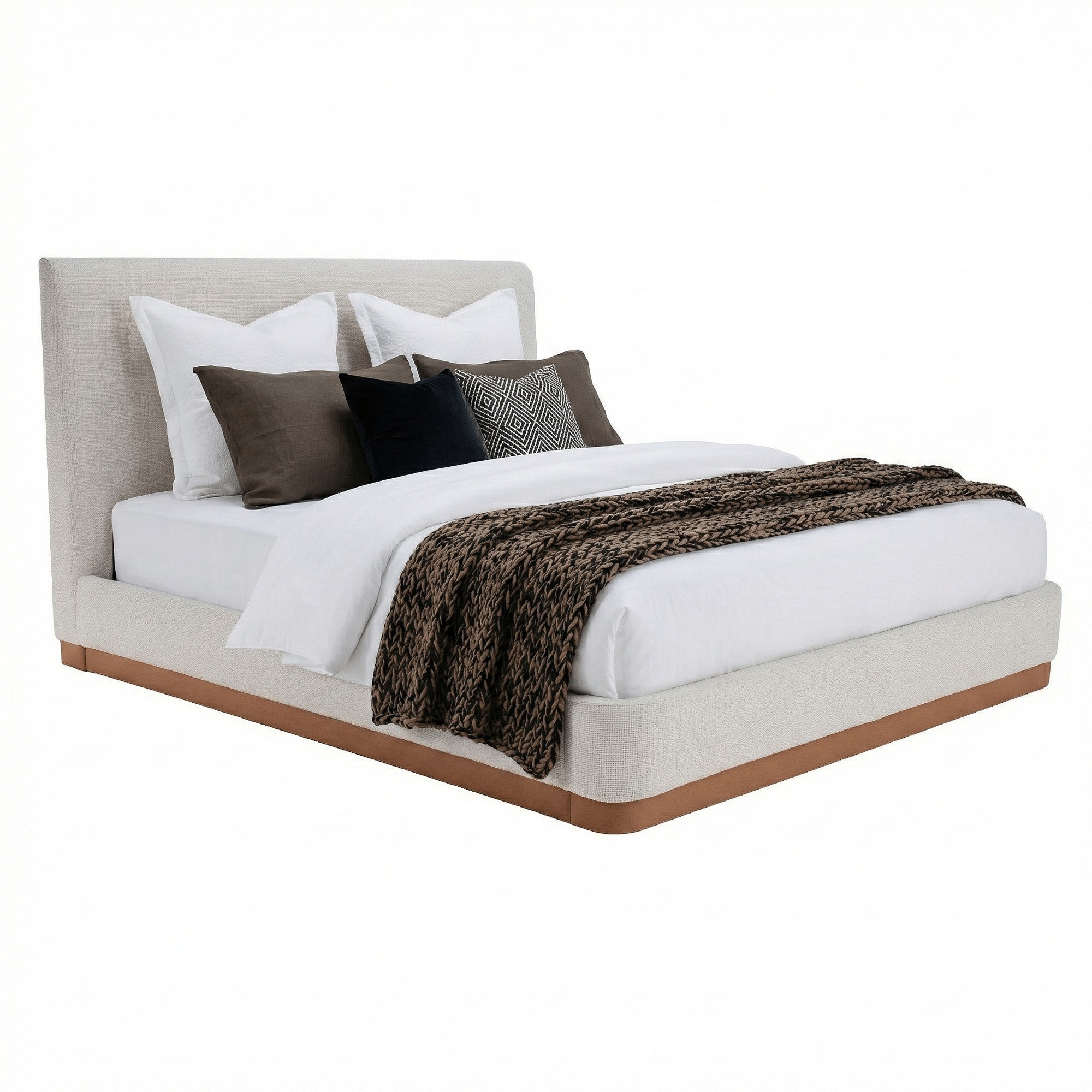 Vneste do svojej spálne eleganciu a pohodlie s manželskou posteľou SELINA 160, ktorá spája moderný dizajn, mäkké čalúnenie a nadčasový štýl. Posteľ je potiahnutá trendovou bielou bouclé látkou s vysokou oderuodolnosťou 50 000 cyklov (Martindale), vďaka čomu je nielen príjemná na dotyk, ale aj mimoriadne odolná. Masívne zadné čelo vysoké 117,5 cm a hrubé 16,5 cm poskytuje komfortnú oporu pri čítaní či relaxovaní a dodáva miestnosti harmonický vizuálny prvok. Stabilnú konštrukciu tvorí kombinácia MDF, drevotriesky a lamina, ktorá zaručuje dlhú životnosť. Zaujímavým detailom je spodná drevená časť vysoká 10 cm, doplnená o hnedú látku, ktorá posteli pridáva kontrast a hĺbku. Celkové rozmery postele sú (ŠxHxV): 169,6x217,5x117,5 cm, pričom plocha na spanie má klasický rozmer 160x200 cm. Výška po rošt je 22,8 cm a predné čelo siaha do výšky 29,5 cm. Posteľ je vybavená latkovým roštom s rozostupom lát 4 cm, ktorý zabezpečí optimálnu podporu matraca. Matrac nie je súčasťou balenia - odporúča sa použiť model s maximálnou výškou 20 cm a zapustením 6 cm. Nosnosť jedného lôžka je 100 kg. Vďaka elegantnému čalúneniu a premyslenému prevedeniu v demonte sa posteľ Selina stane dominantným a zároveň útulným prvkom každej spálne.