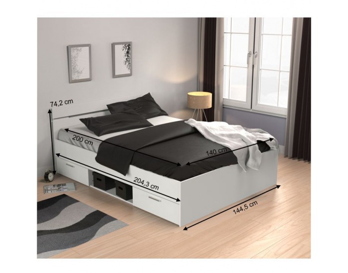 Posteľový rám MICHIGAN 140 je praktická posteľ s úložným priestorom v podobe zásuviek, ktoré je možné zložiť na ľavú aj pravú stranu a odkladacích priestorov. Spacia plocha má rozmery 140x200 cm. Dodáva sa bez roštu a matraca, ktoré je možné doobjednať. Výška od zeme po rošt je 26 cm. Výška bočnice je 39,6 cm. Je vhodné ho umiestniť do spálne, detskej alebo študentskej izby. Materiál použitý na výrobu je fóliovaná DTD (15 mm) vo farebnom prevedení biela, pričom na výber je aj vo farbe dub sonoma. Odporúčame dokúpiť kovový rošt 7867 140x200 cm a matrac s rozmermi 140x200 cm z našej ponuky. Nosnosť je 110 kg.