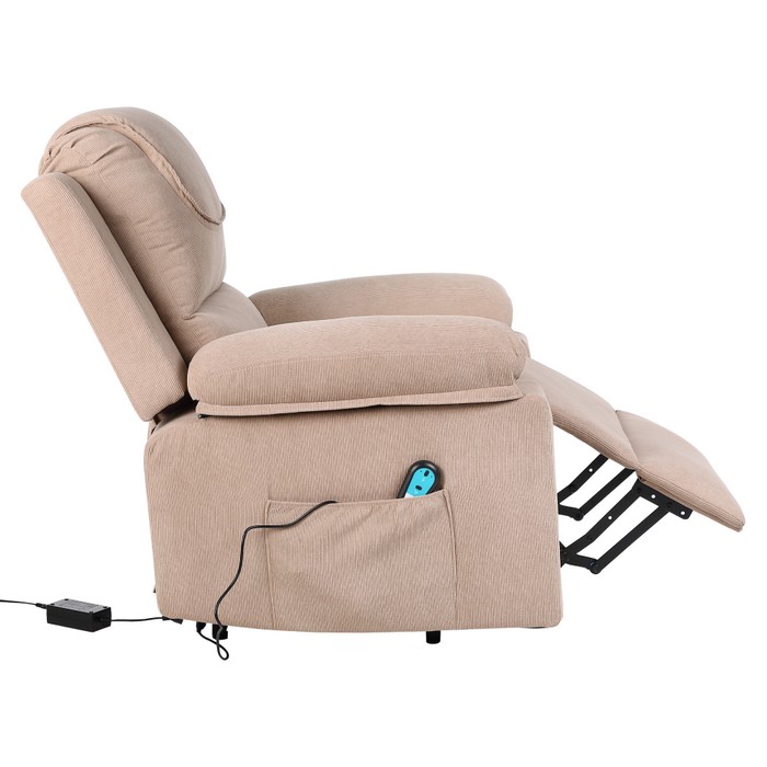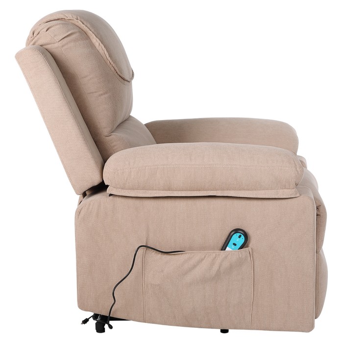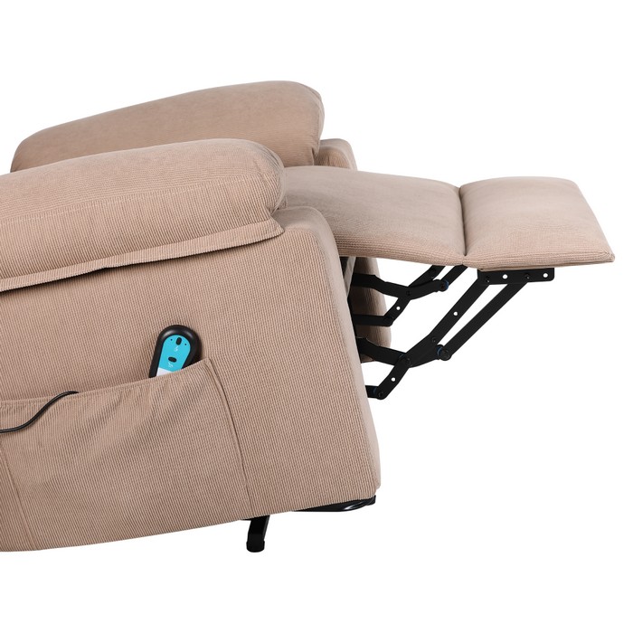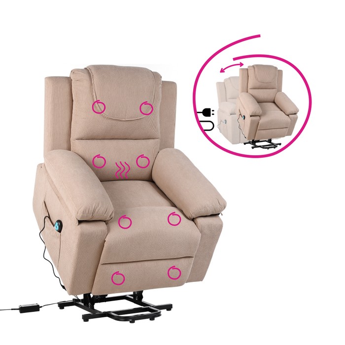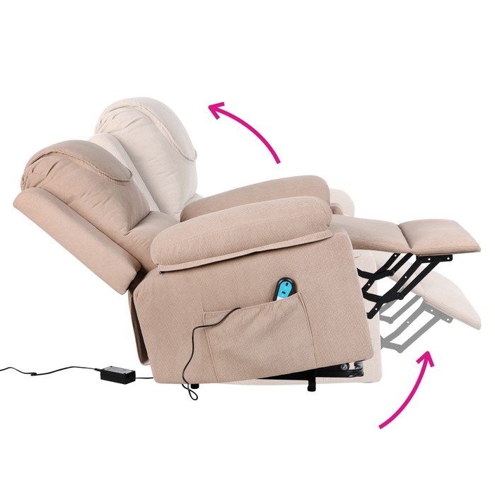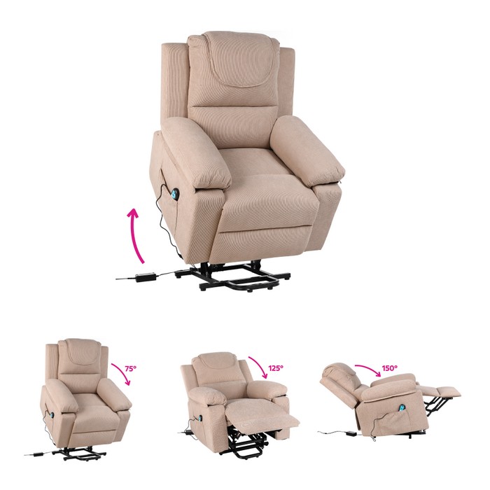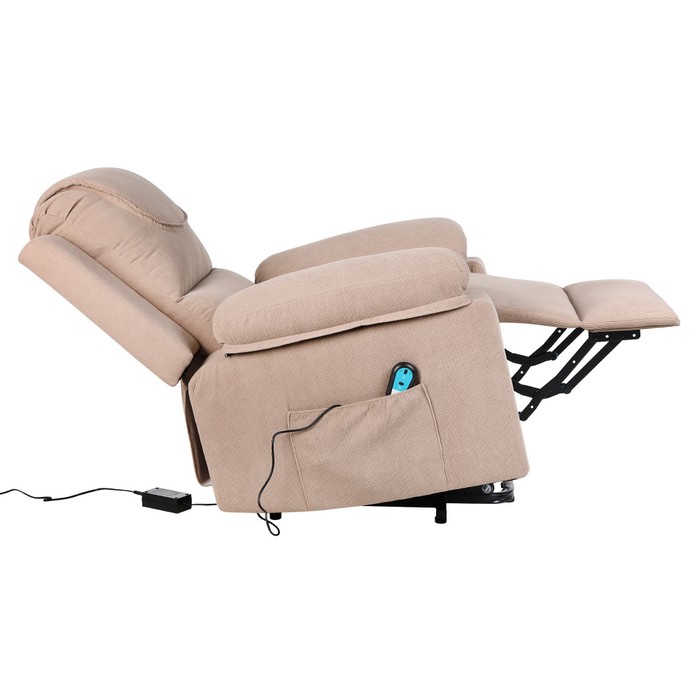 Elektrické relaxačné kreslo LIFTELO predstavuje spojenie pohodlia, moderných technológií a starostlivosti o telo. Už na prvý pohľad zaujme stabilným a robustným prevedením, pričom skutočný komfort pocítite až pri samotnom používaní. Kreslo je navrhnuté tak, aby poskytovalo dokonalý oddych, regeneráciu a každodenný relax v pohodlí domova. Vďaka elektrickému polohovaniu sa kreslo jednoducho prispôsobí individuálnym potrebám používateľa. Plynulý motor umožňuje nastaviť ideálnu relaxačnú polohu alebo bezpečne pomáha pri vstávaní, čo ocenia najmä seniori či osoby so zníženou pohyblivosťou. Ovládanie je intuitívne a zabezpečuje maximálné pohodlie bez námahy. Súčasťou kresla je masážna a vyhrievacia funkcia, ktorá premieňa bežné sedenie na príjemný wellness zážitok. Osem vibračných masážnych bodov pôsobí na oblasť chrbta, krížov a stehien, pomáha uvoľňovať svalové napätie a podporuje cirkuláciu krvi. Vyhrievanie v oblasti pásu dodáva príjemné teplo, ktoré prispieva k celkovej relaxácii tela aj mysle. Používateľ si môže vybrať z piatich masážnych režimov, troch úrovní intenzity a nastaviť časovač v intervale 10 až 30 minút. Kreslo je potiahnuté kvalitnou hnedou látkou s oderuodolnosťou 15 000 cyklov podľa testu Martindale, vďaka čomu je vhodné na každodenné používanie. Stabilitu zabezpečuje kombinácia pevného dreveného rámu, železnej konštrukcie a výplne z polypropylénovej bavlny a špongie. Ergonomické tvarovanie a veľkorysé rozmery poskytujú dostatočnú oporu a komfort pri každom sedení. Celkové rozmery kresla sú (ŠxHxV): 84x69-165x52-83 cm. Výška sedu dosahuje 50 cm, hĺbka sedu 54 cm a šírka sedu 48 cm. Chrbtová opierka má šírku 84 cm a výšku 65 cm, pričom jej sklon je možné nastaviť až do uhla 160°. Maximálna nosnosť kresla je 150 kg. Model disponuje elektrickou zdvíhacou funkciou, mechanizmom vyklápania chrbta a podnože, praktickými bočnými vreckami aj odkladacím priestorom. Súčasťou balenia sú dve diaľkové ovládania - jedno na polohovanie a druhé na ovládanie masáže. Dĺžka sieťových káblov je 1,2 m a 1,8 m, káble k ovládačom majú dĺžku 1,6 m a 1 m. Kreslo pracuje s napätím 12 V, prúdom 1 A a výkonom 12 W, pričom je kompatibilné s napätím siete 100-240 V. Kreslo sa dodáva v demonte a po zložení ponúka ideálne miesto na oddych, regeneráciu aj každodenné pohodlné sedenie.