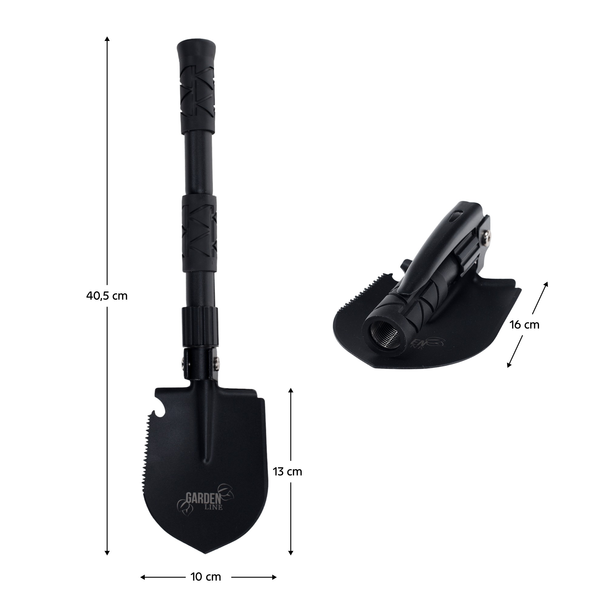 Majte vždy poruke kompaktný a spoľahlivý nástroj, ktorý zvládne všetko, čo potrebujete. Skladacia lopata TURAN TYP 2, vyrobená z odolnej ocele a uhlíkovej ocele v elegantnej čiernej farbe, je ideálna na záhradu, do prírody, na kempovanie aj rybárčenie. Vďaka premyslenej konštrukcii ponúka multifunkčné prevedenie 5v1, takže ju môžete používať ako rýľ, motyku, pílku, krompáč či otvárač fliaš. Jej čepeľ s rozmermi (ŠxV): 10x13 cm, hrúbkou 1,5 cm a tvrdosťou HRC 42-48 je pripravená na náročné podmienky, zatiaľ čo ergonomická rukoväť zabezpečuje pevné a pohodlné uchopenie. V zloženom stave má lopata iba 16 cm, čo z nej robí praktického spoločníka, ktorý zaberie minimum miesta, no po rozložení dosiahne plnohodnotnú dĺžku 40,5 cm pre efektívnu prácu. Súčasťou balenia je aj puzdro na prenášanie, vďaka ktorému ju ľahko uložíte do batohu či auta. Turan Typ 2 je praktická, skladacia a mimoriadne univerzálna lopata, ktorá vám uľahčí akúkoľvek činnosť v teréne aj doma.