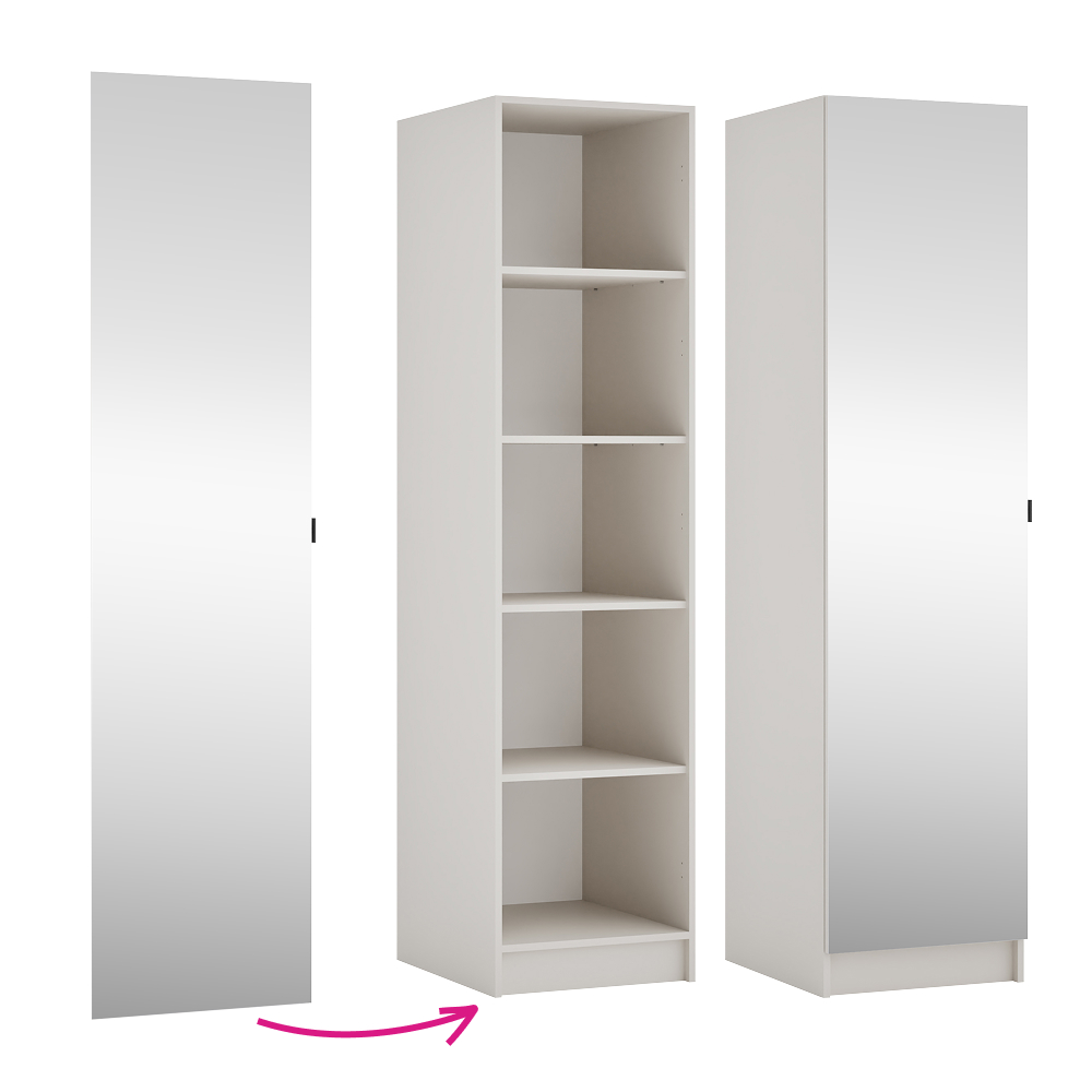 Nízke dvierka so zrkadlom KREO 50 predstavujú praktické a elegantné riešenie na uzavretie korpusov s nadstavcami a pomáhajú udržať poriadok vo vašom šatníku. Sú vyrobené z laminovanej DTD s ABS hranami a doplnené sklom, pričom majú moderné farebné prevedenie kašmír. Rozmery dvierok sú (ŠxHxV): 49,6x1,6x189,3 cm a hrúbka DTD materiálu je 1,6 cm, zatiaľ čo ABS hrany majú hrúbku 0,2 cm. Dvierka obsahujú integrované zrkadlo a vďaka univerzálnemu prevedeniu ich môžete namontovať na pravú aj ľavú stranu podľa dispozície miestnosti. Komfort pri používaní zabezpečuje tichý domyk spolu s kvalitnými pántmi. Súčasťou je aj úchytka z plastu v čiernej farbe, ktorá dotvára moderný vzhľad. Dvierka je možné kombinovať s nábytkom v odtieni dub artisan a sú vhodné pre korpusy Kreo 50, 100 a 150. Produkt je dodávaný v demonte, čo uľahčuje transport aj manipuláciu.