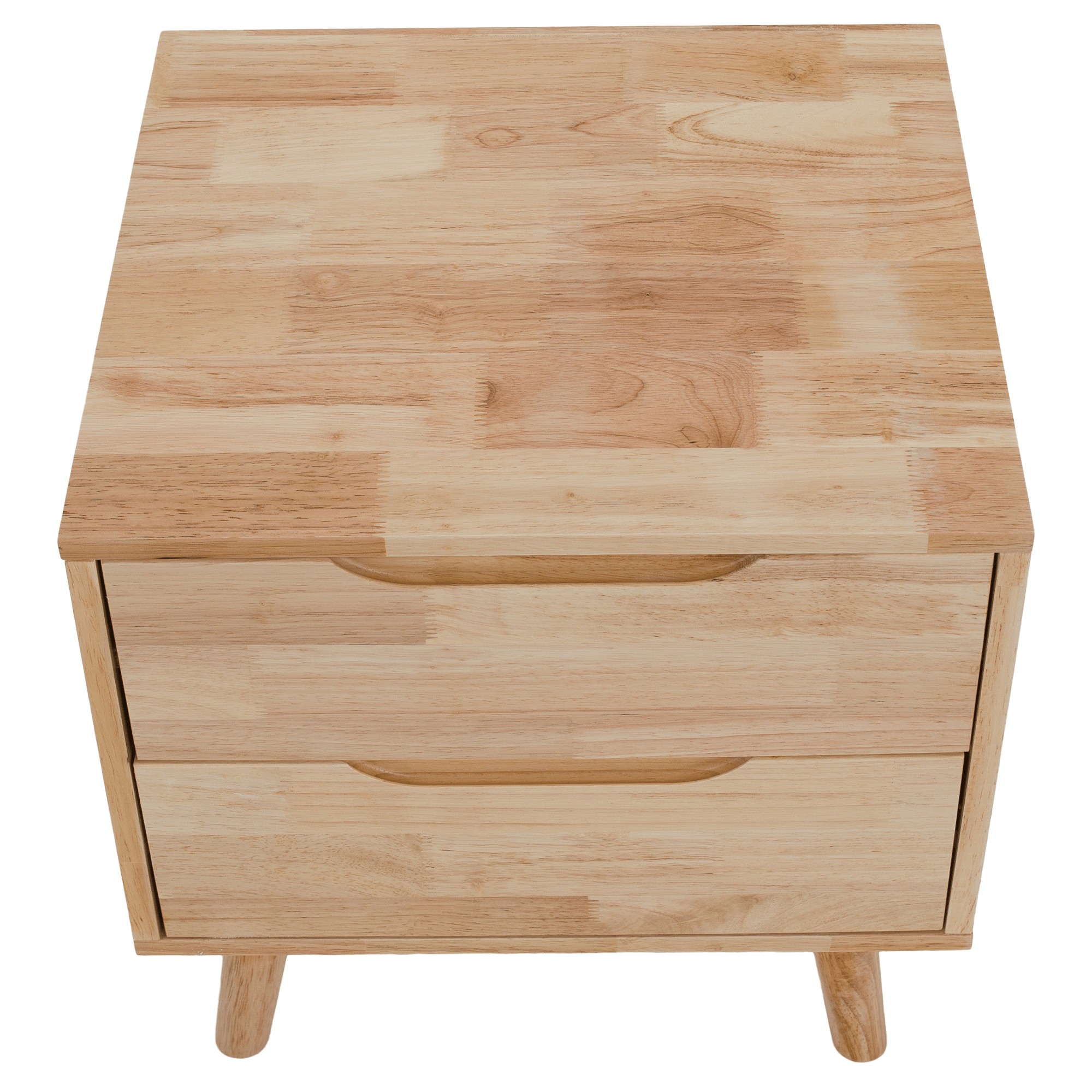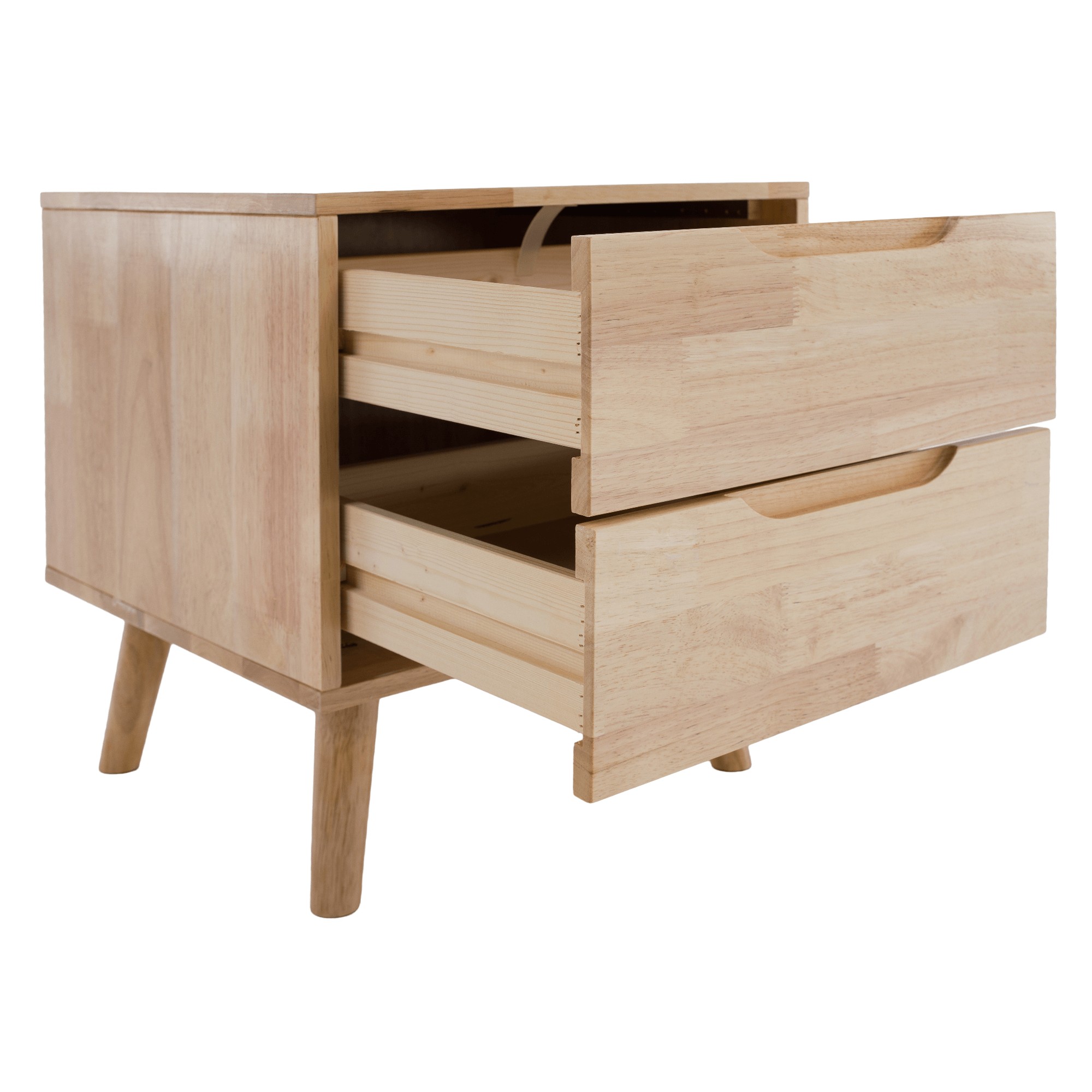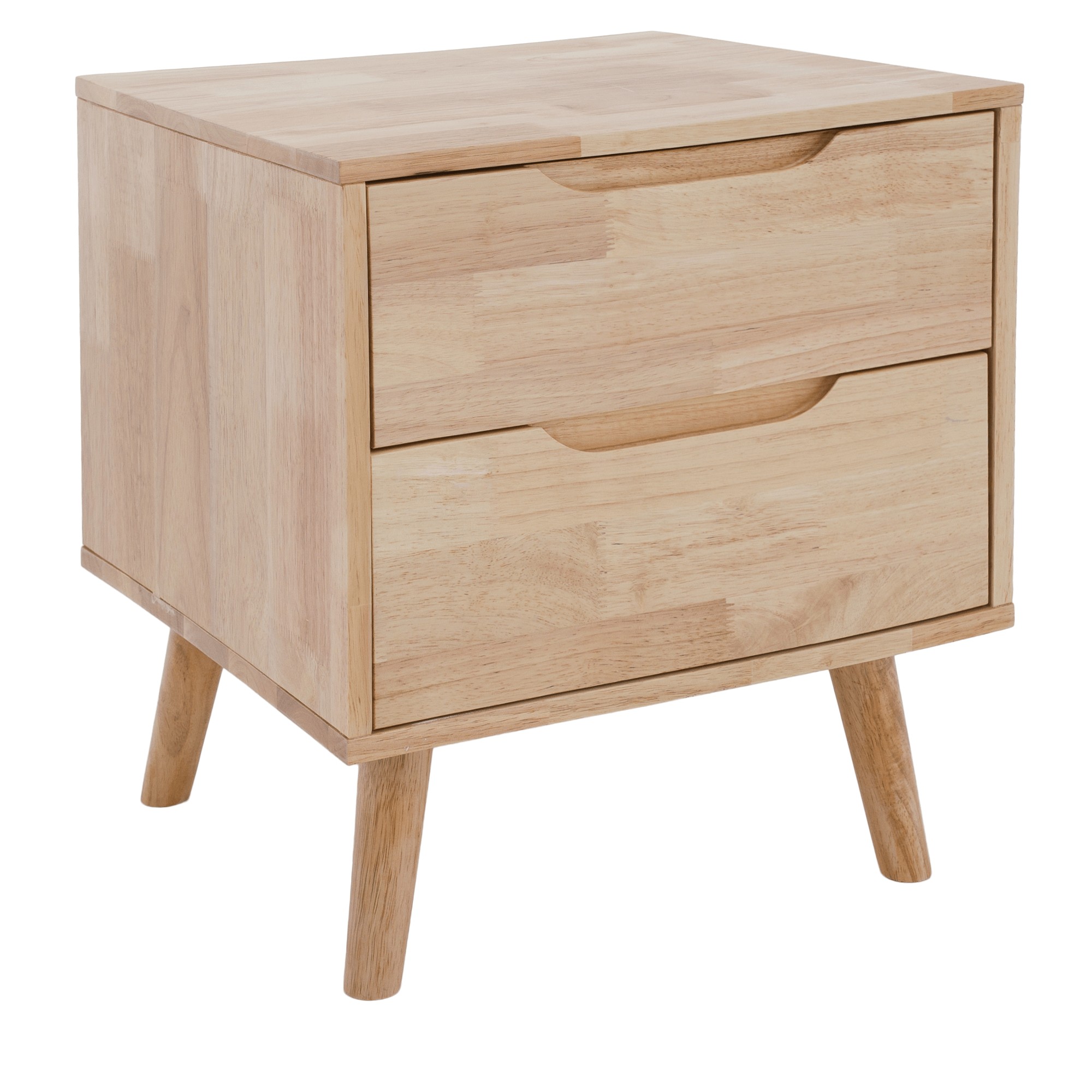 Nočný stolík BRUNI je štýlový a funkčný doplnok, ktorý dokonale doplní vašu spálňu. Jeho kompaktný dizajn umožňuje umiestnenie aj do menších priestorov, pričom stále poskytuje dostatok úložného priestoru v dvoch zásuvkách, do ktorých si môžete odložiť všetko potrebné. Vrchnú plochu stolíka môžete využiť na lampu, dekorácie alebo predmety, ktoré chcete mať počas noci vždy poruke. Stolík je vyrobený z kombinácie odolného kaučukového dreva, ktoré tvorí rám a nožičky, a borovicového dreva použitého na zásuvky, pričom celé prevedenie je v prírodnom tóne, ktorý dodáva nábytku nadčasový vzhľad. Zásuvky nemajú klasické úchytky - ich pohodlné otváranie zabezpečujú praktické zafrézované úchyty, a stabilitu stolíka zaručujú pevné nožičky vysoké 15 cm. Má celkové rozmery (ŠxHxV): 43x40,5x48 cm, výšku stolíka 33 cm a dodáva sa v demontovanom stave.