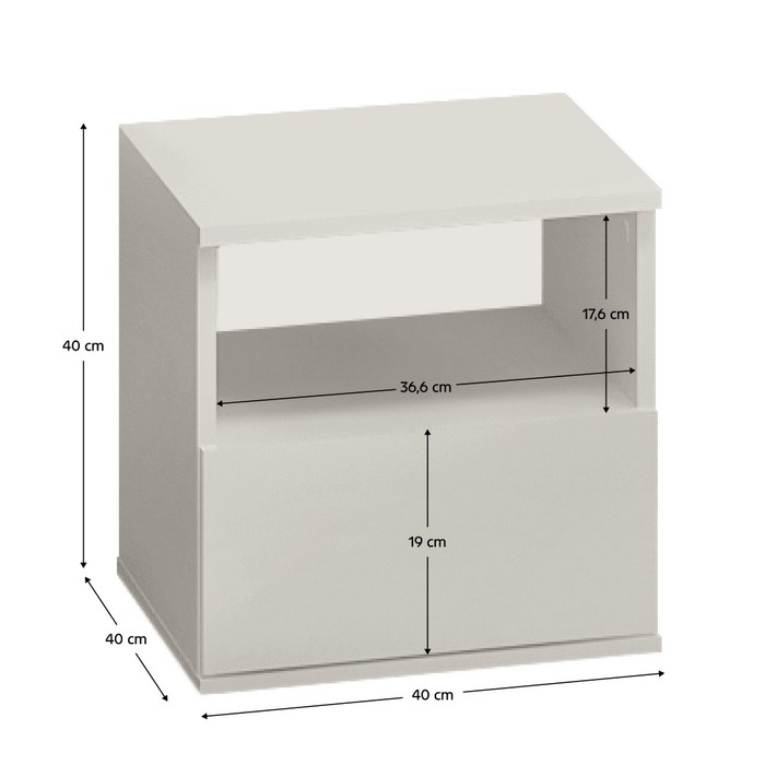 Nočný stolík DOLI je praktickým a štýlovým doplnkom, ktorý si nájde svoje miesto v každej spálni aj detskej izbe. Tento kompaktný a elegantný kus nábytku ponúka funkčný odkladací priestor priamo pri posteli. Disponuje zásuvkou na uloženie drobností a otvorenou odkladacou plochou, ideálnou na knihy, okuliare, budík či lampu. Vyhotovený je z laminovanej DTD v nadčasovej farbe kašmír, ktorá pôsobí čisto a ľahko sa kombinuje s ostatným zariadením. Minimalistický dizajn s jednoduchými líniami umožňuje stolíku prirodzene zapadnúť do akéhokoľvek interiéru. Rozmery nočného stolíka sú (ŠxHxV): 40x40x40 cm a hrúbka laminovanej DTD dosahuje 1,6 cm. Zásuvka má výšku 19 cm a nosnosť 5 kg, zatiaľ čo otvorená odkladacia plocha má výšku 17,6 cm. Stolík je osadený plastovými nožičkami - klzákmi, celková nosnosť je 10 kg a je riešený bez úchytiek, čo podčiarkuje jeho moderný vzhľad. Ide o kvalitný slovenský výrobok, ktorý sa dodáva v demontovanom stave.