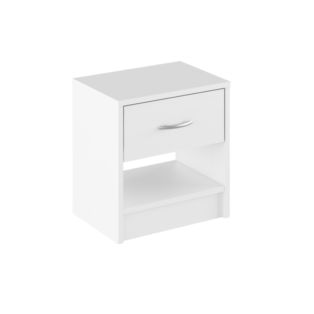 Elegantný nočný stolík NEA 2 NEW je praktický a štýlový doplnok do každej spálne. Jeho jednoduchý, no moderný dizajn dokonale zadpadne do rôznych interiérov. Vyrobený je z laminovanej DTD v bielom prevedení. Disponuje jedným šuplíkom s úchytkou v striebornej farbe a otovreným úložným priestorom v spodnej časti. Celkové rozmery sú (ŠxHxV): 39x28x41 cm. Dodávaný je v demonte.