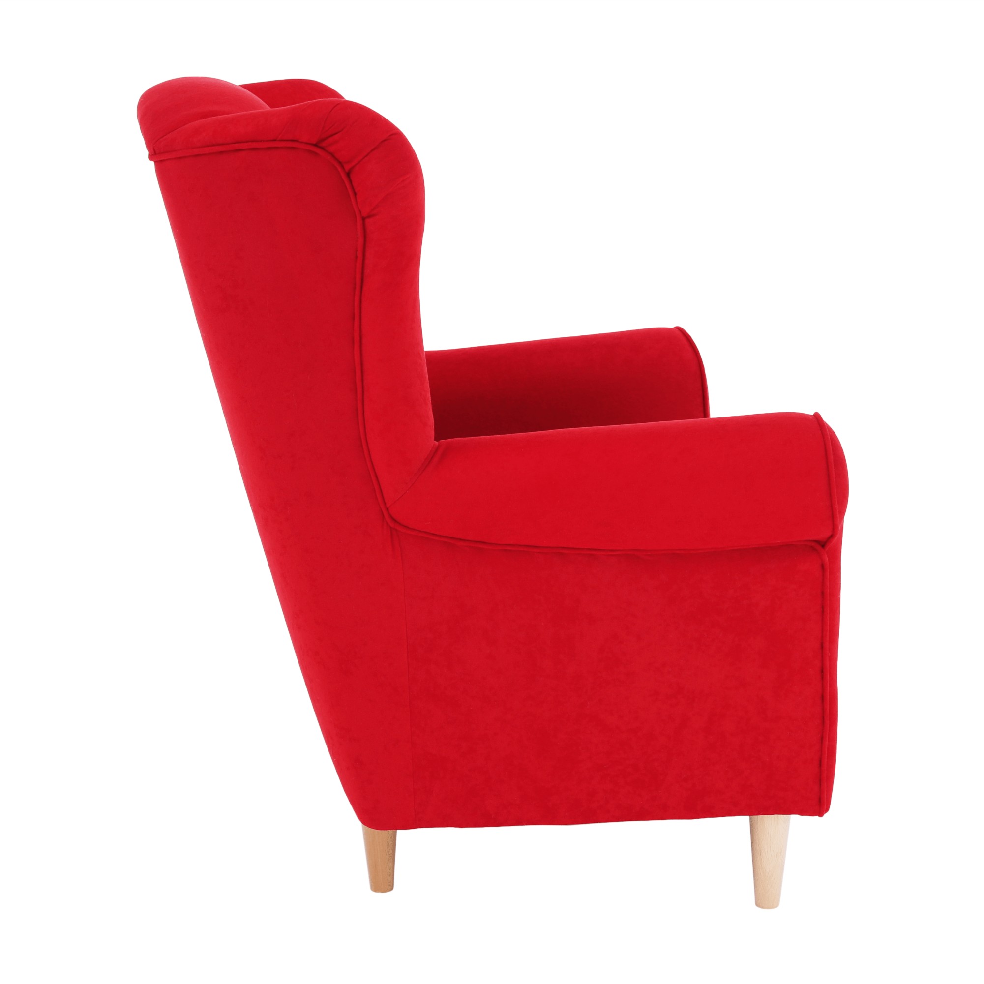 Kreslo CHARLOT je pohodlné kreslo - ušiak, ktoré bude praktickým doplnkom vo Vašej domácnosti. Jadro tvorí purpena, ktorá poskytuje príjemné sedenie. Nohy kresla sú vyrobené z dreva vo farbe buk a kreslo je čalúnené červenou látkou Alova, pričom na výber je aj v iných farebných vyhotoveniach. Výška sedu je 42 a hĺbka sedu je 48 cm.