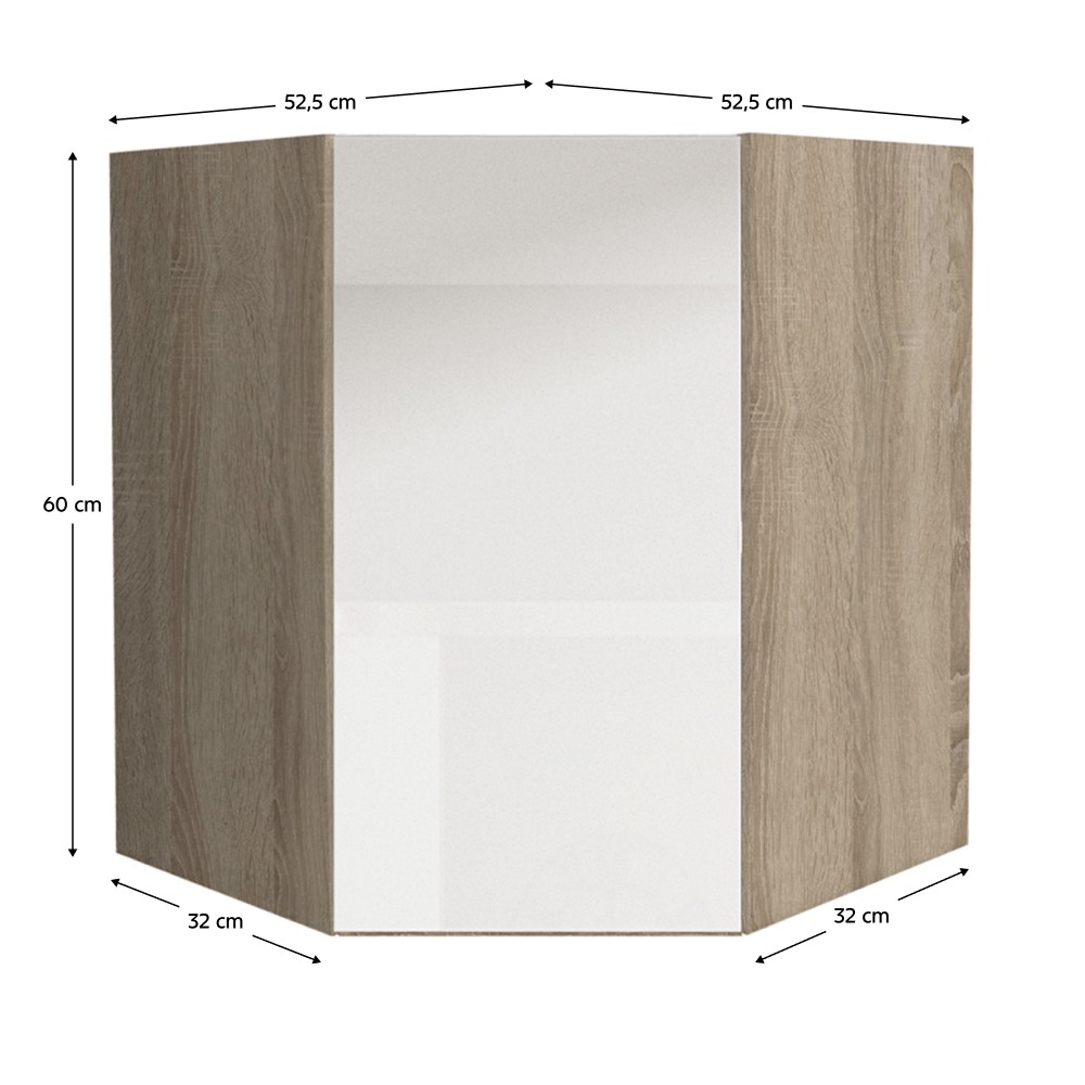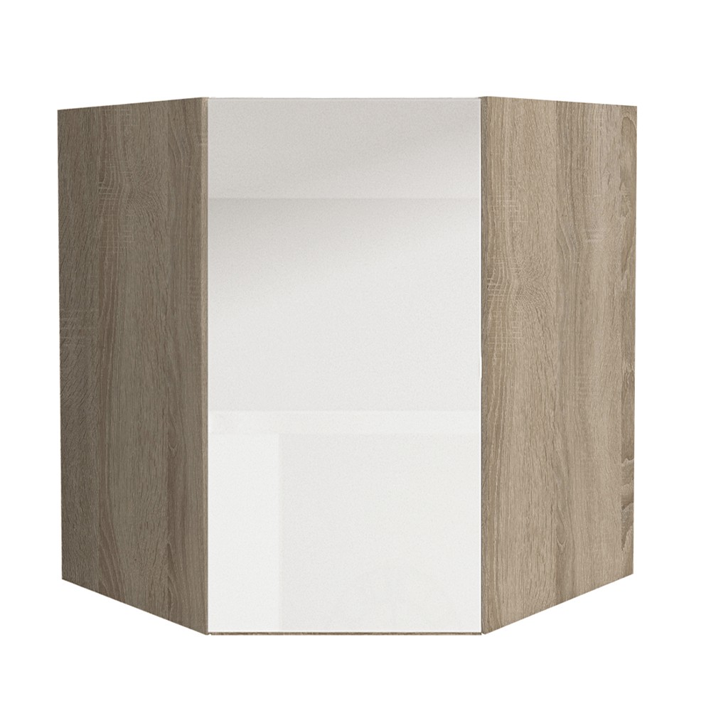 Horná rohová kuchynská skrinka Line White GR - biely vysoký lesk / dub sonoma