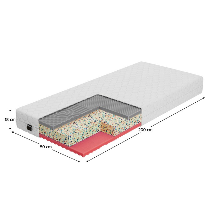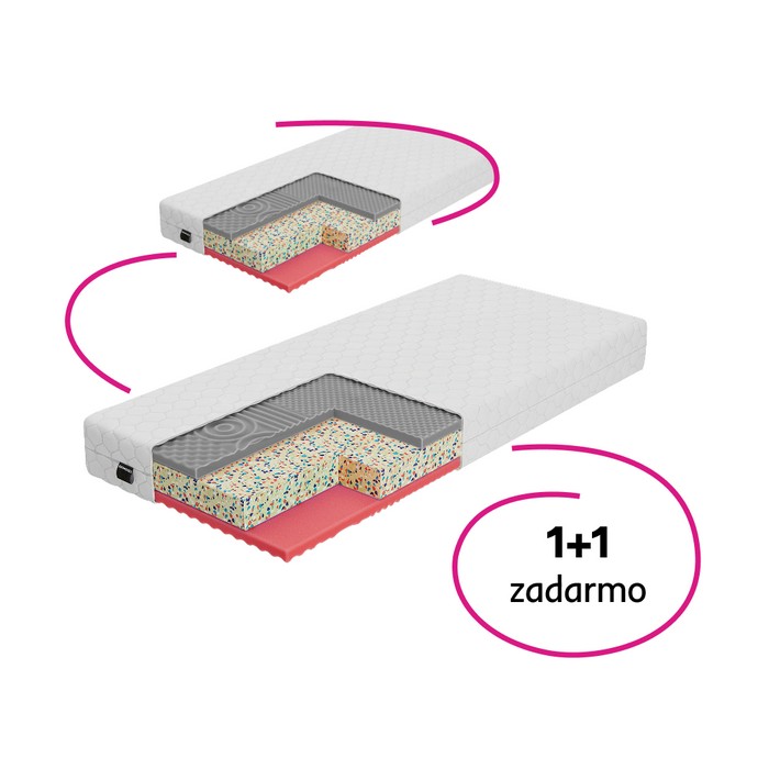 Sendvičový matrac ARONY predstavuje praktické a cenovo výhodné riešenie pre kvalitný každodenný spánok. Set obsahuje dva samostatné matrace, ktoré sú ideálne pre partnerské postele, detské alebo hosťovské izby, prípadne ako rezervné matrace do domácnosti. Konštrukcia matraca je tvorená kombináciou PUR pien T24 a T25 a pevnej RE peny T60 s vysokou hustotou 60 kg/mł. Stredová vrstva z RE peny zabezpečuje stabilnú oporu tela, vysokú odolnosť a dlhodobú tvarovú stálosť. Vrchné vrstvy z pružnej PUR peny sa prispôsobujú krivkám tela, pomáhajú rovnomerne rozložiť tlak a podporujú správne držanie chrbtice počas spánku. Obe strany matraca sú nopovo profilované, čo zvyšuje elasticitu povrchu a prináša jemný masážny efekt. Profilovanie zároveň podporuje lepšie odvetrávanie matraca, odvádza vlhkosť a prispieva k hygienickému prostrediu s nižším výskytom roztočov a baktérií. Matrac je obojstranný s tvrdosťou T2 a T3, takže si môžete zvoliť mäkšiu alebo stredne tvrdú stranu podľa vlastných potrieb. Výška matraca je 18 cm, rozmery jedného kusa sú 80x200 cm a maximálna nosnosť na osobu dosahuje 90 kg. Súčasťou matraca je prešívaný snímateľný poťah zo 100 % polyesteru s certifikátom OEKO-TEX. Poťah je antibakteriálny, antialergický a antiroztočový, príjemný na dotyk a odolný voči oderu aj horľavosti cigariet. Možno ho prať pri teplote 60 °C, čo zabezpečuje jednoduchú údržbu a dlhodobú čistotu. Pre maximálny komfort odporúčame matrac používať na lamelovom rošte. Farba peny a prešívanie poťahu sa môžu mierne líšiť od vyobrazenia bez vplyvu na kvalitu a funkčnosť produktu.