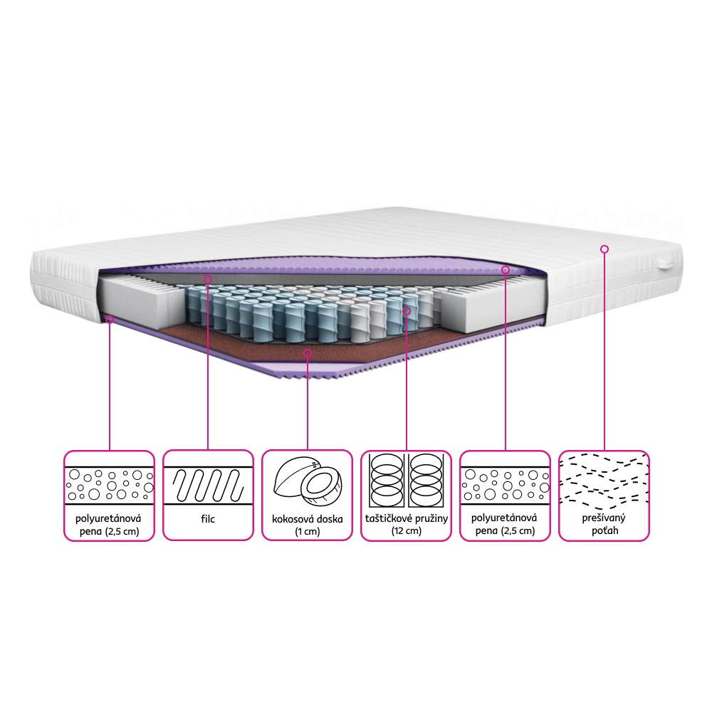 | MATERIÁL | PUR pena / taštičkové pružiny / kokos / filc |