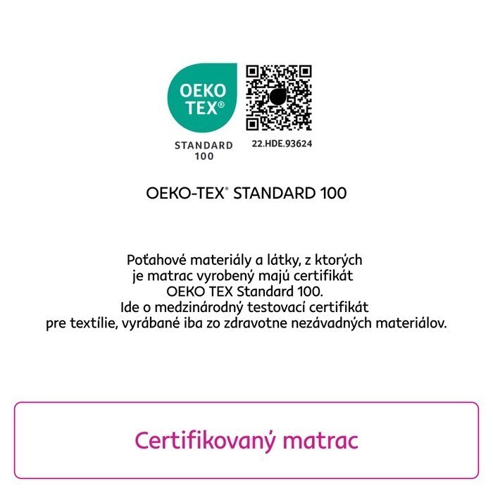 Taštičkové matrace predstavujú skvelú voľbu pre každého, kto túži po kvalitnom spánku, správnej opore tela a vysokom komforte. Obojstranný taštičkový matrac ROLKO 160x200 vám poskytne ideálne podmienky na oddych a zabezpečí, že sa budete každé ráno prebúdzať oddýchnutí a plní energie. Vnútro matraca tvorí 7-zónové taštičkové jadro s hustotou 256 taštičiek/m˛, ktoré je rozdelené do siedmich zón s rôznou tvrdosťou. Tie sa postarajú o presnú oporu jednotlivých častí tela - od hlavy až po nohy - a pomáhajú udržiavať chrbticu v správnej polohe. Jadro prirodzene reaguje na pohyb tela a prispôsobuje sa jeho tvaru. Vrchná aj spodná strana matraca sú doplnené o 2 cm komfortnej peny s hustotou 24 kg/m3, ktorá zvyšuje pružnosť, podporuje cirkuláciu vzduchu a prispieva k pohodlnému spánku. Matrac je vybavený kvalitným poťahom Silver (200 g/m2, 100 % polyester), ktorý je mäkký na dotyk, snímateľný po celom obvode a prateľný pri teplote do 40 °C. Vďaka tomu je údržba jednoduchá a hygiena na vysokej úrovni. Certifikát OEKO-TEX® Standard 100 potvrdzuje jeho zdravotnú nezávadnosť. Matrac sa vďaka obojstrannému vyhotoveniu a taštičkovému jadru prispôsobí vašim individuálnym potrebám a zabezpečí komfortný spánok. Matrac je vákuovo balený, preto sa po rozbalení odporúča ponechať ho 3 - 5 dní na rovnom povrchu, aby sa vrátil na svoju plnú výšku.