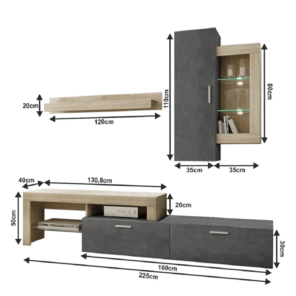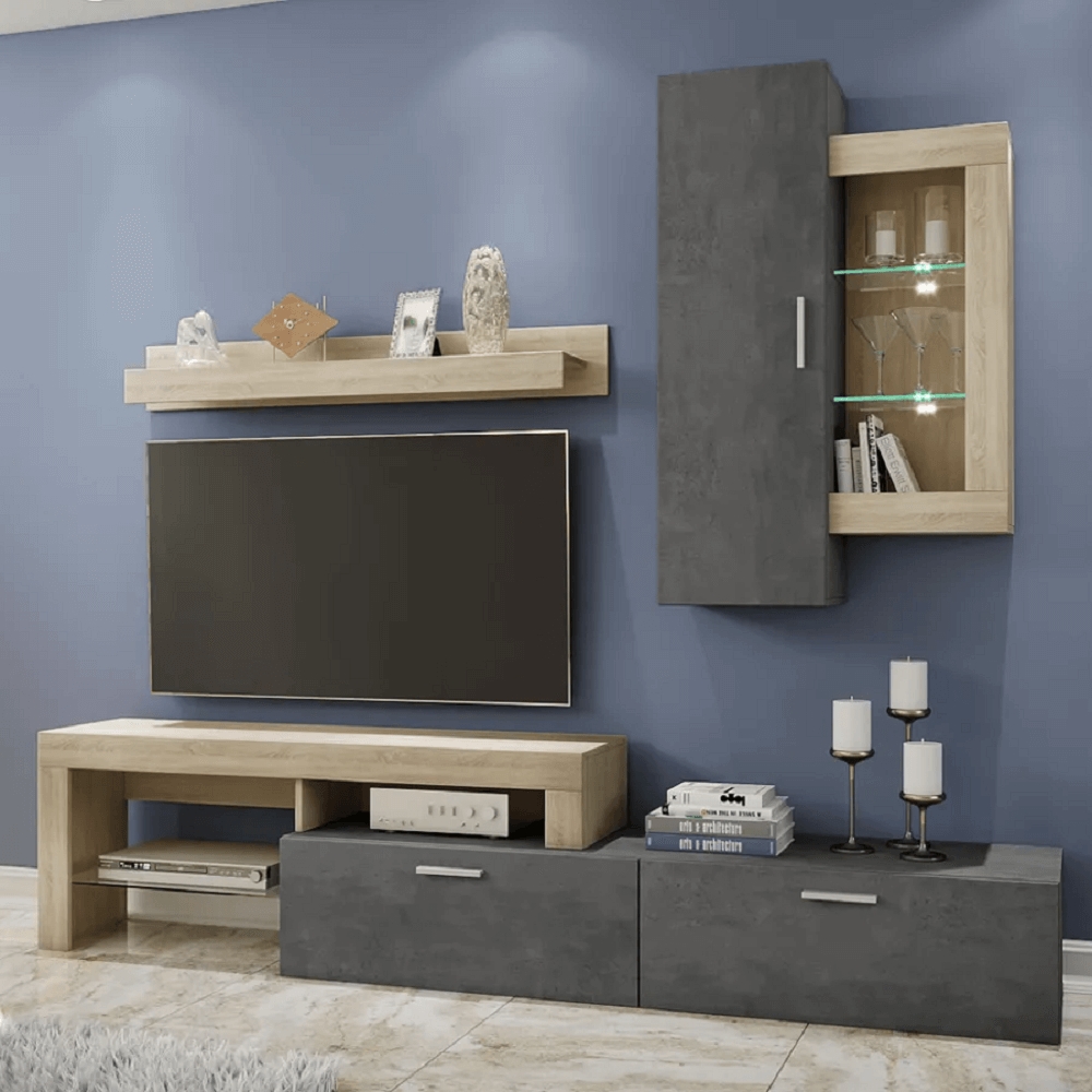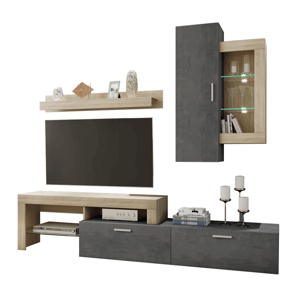 Obývacia stena Calabria - dub sonoma / tmavý betón