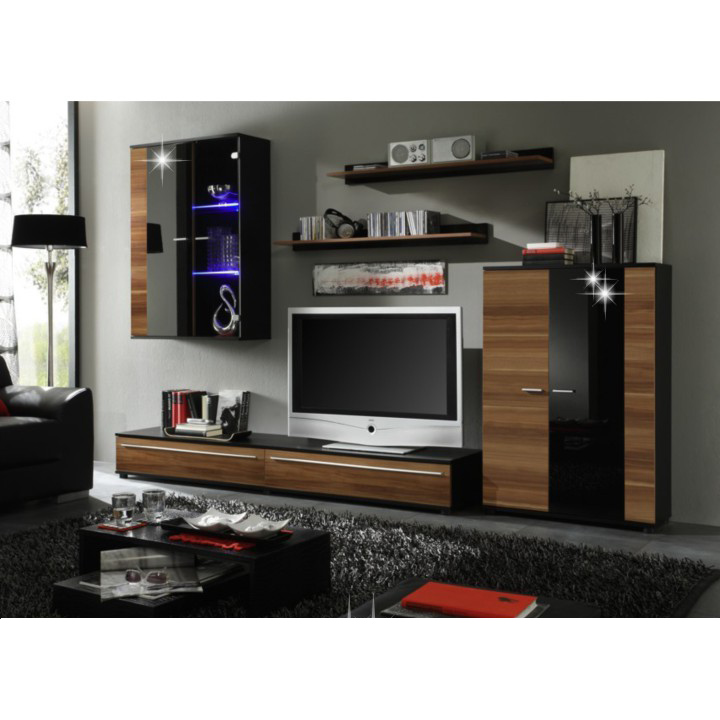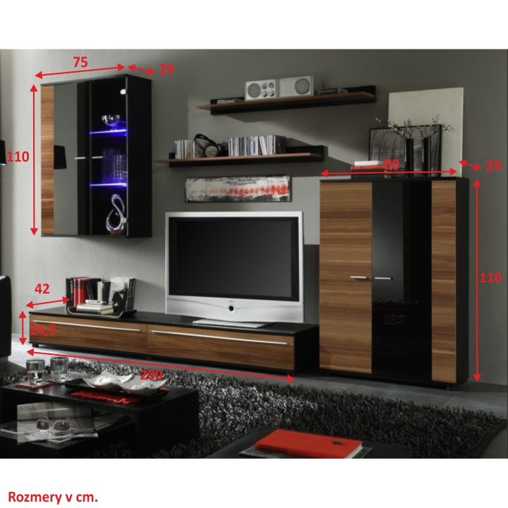 Obývacia stena Canes - slivka / čierny vysoký lesk