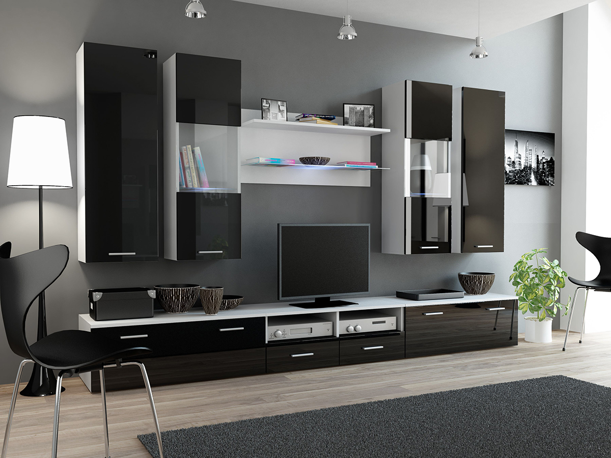 Obývacia stena Dream 2 - biely mat / čierny lesk