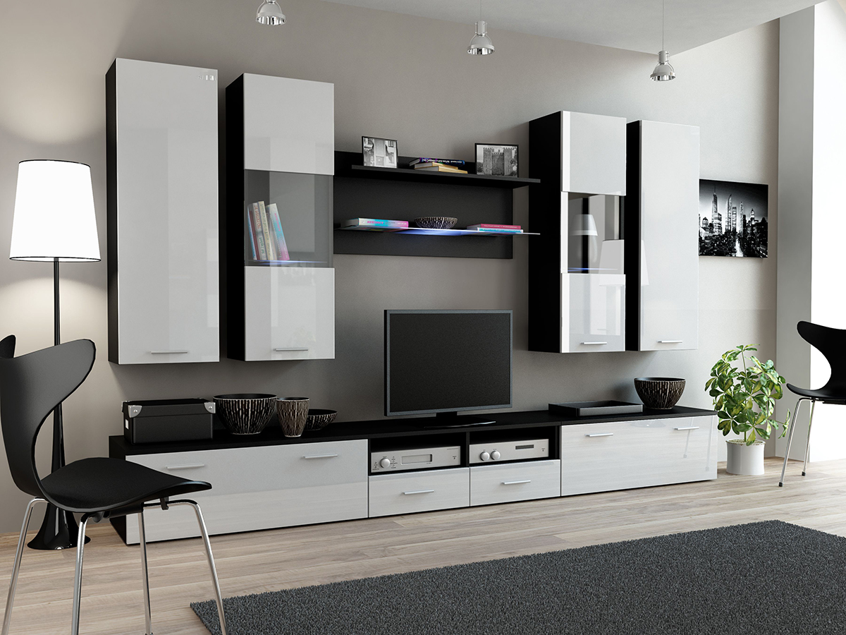 Obývacia stena Dream 2 - čierny mat / biely lesk