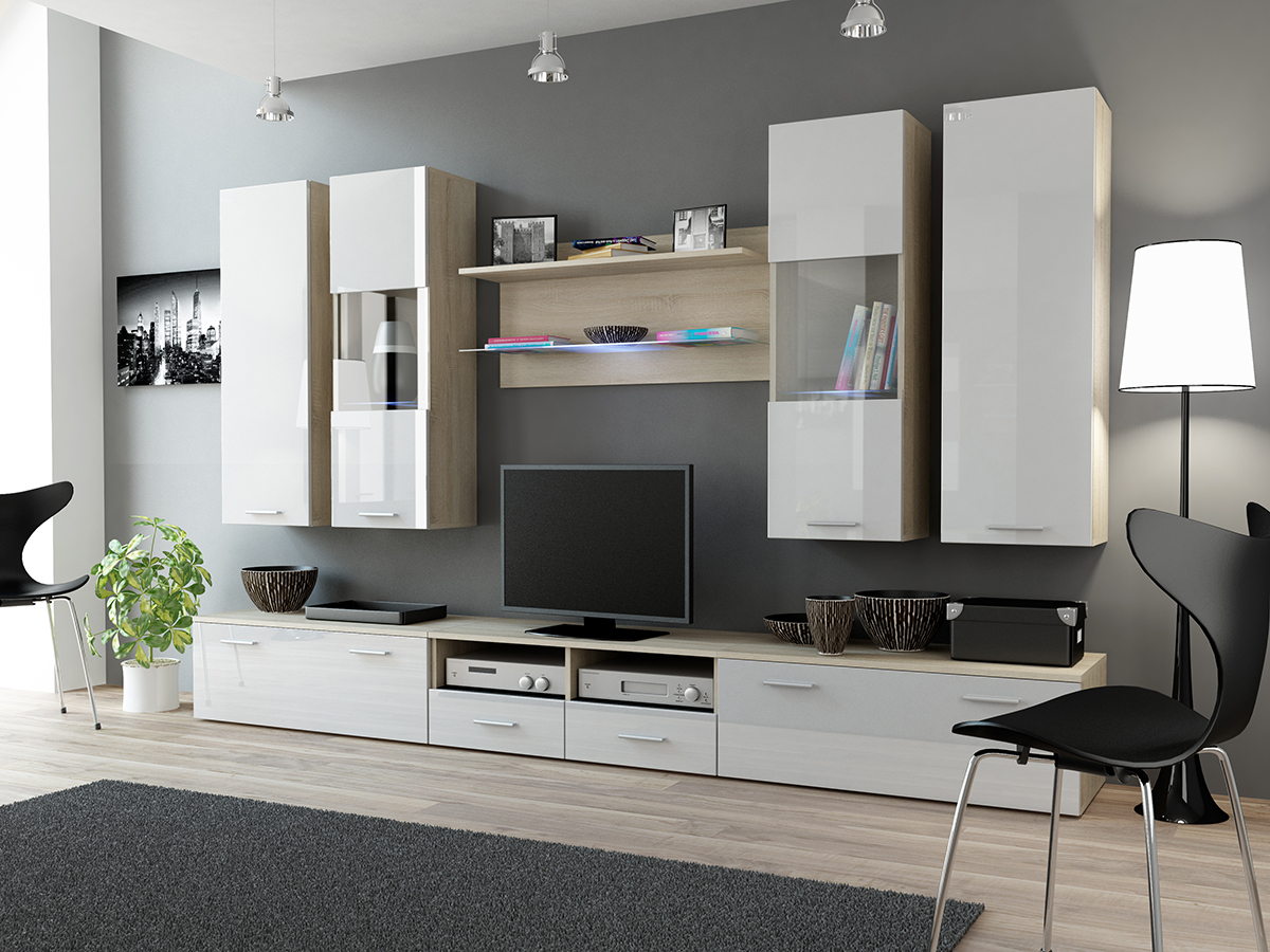 Obývacia stena Dream 2 - dub sonoma / biely lesk