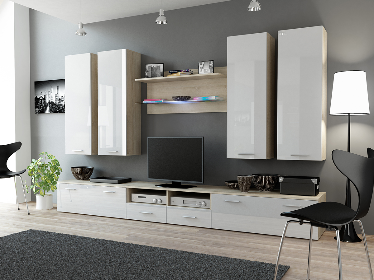 Obývacia stena Dream 3 - dub sonoma / biely leskObývacia stena Dream 3 - dub sonoma / biely lesk