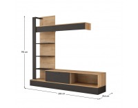 Obývacia stena Geluza v elegantnom prevedení dub riviera a čierna je ideálnym riešením pre moderné interiéry. Táto štýlová zostava od značky KONDELA ponúka praktické a estetické využitie priestoru vo vašej obývačke. S výškou 192 cm, šírkou 205 cm a hĺbkou 41,6 cm poskytuje dostatok úložného priestoru na vaše osobné veci, dekorácie či elektroniku.