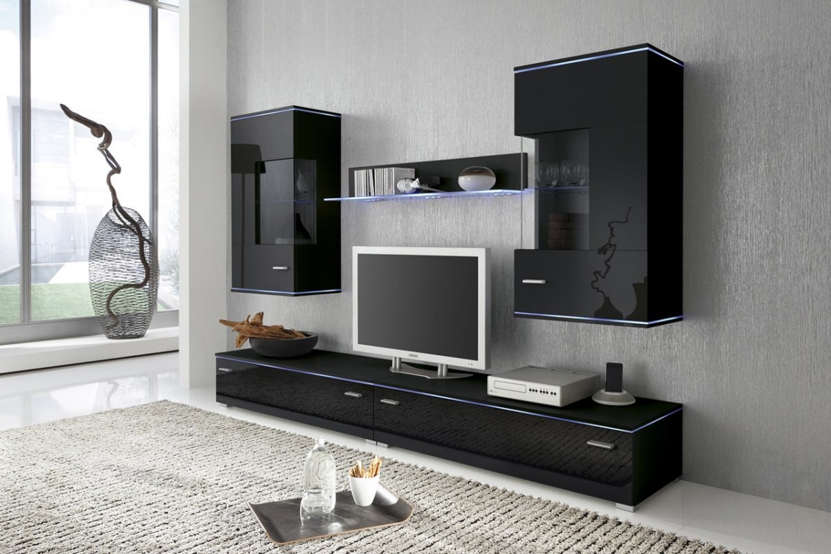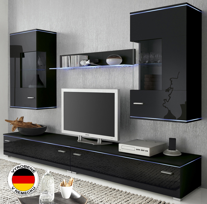 Obývacia stena Kiel - čierny mat / čierny vysoký lesk