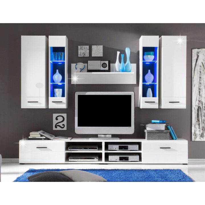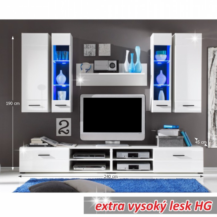 Obývacia stena s osvetlením Forse - biela / biely vysoký lesk