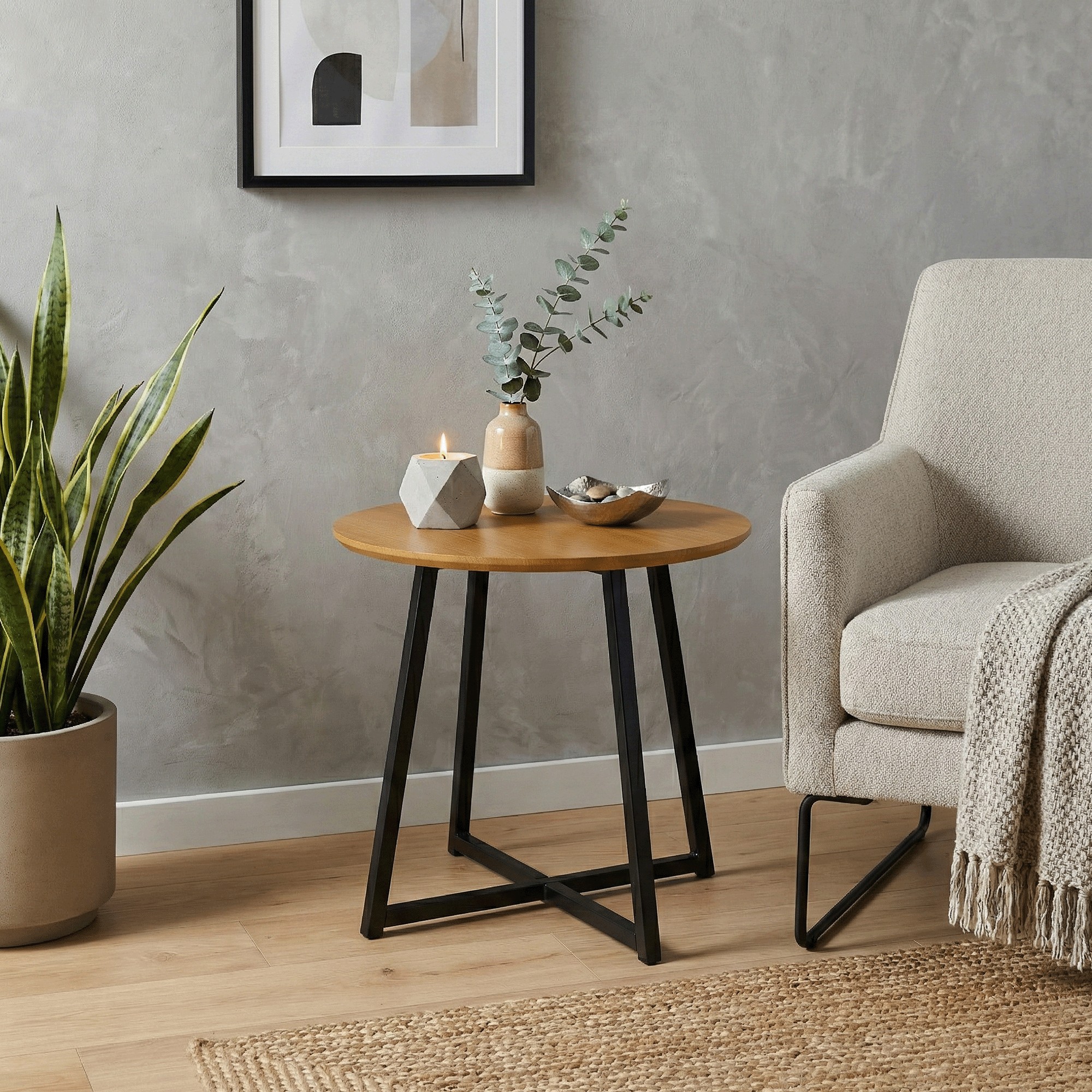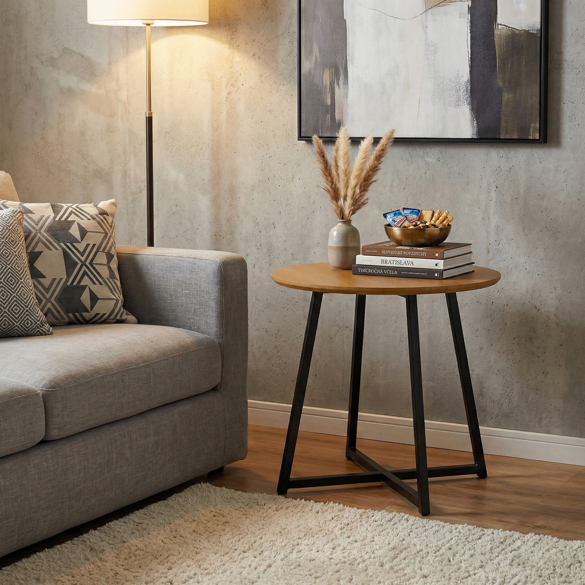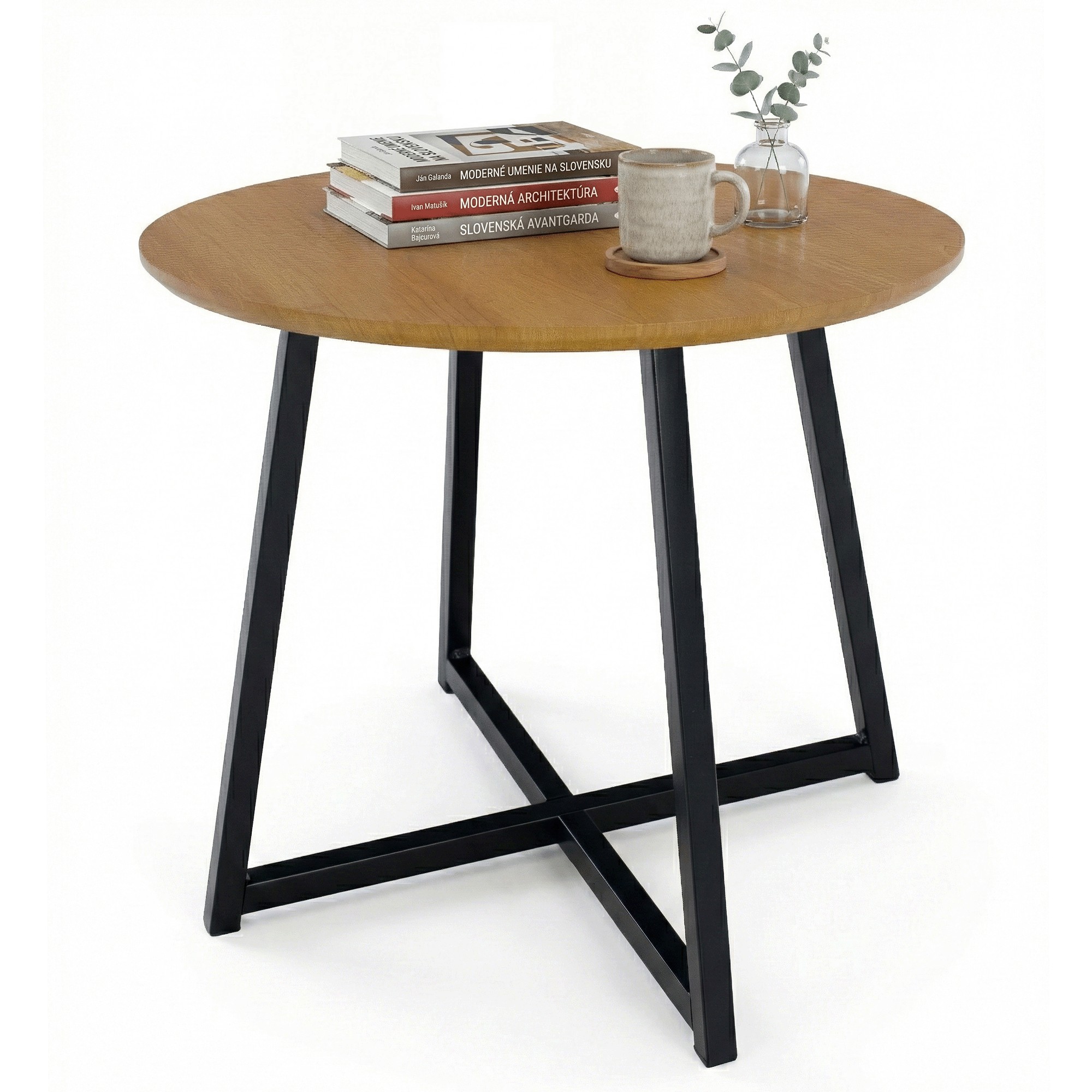 Okrúhly príručný stolík Delik - dub / čierna