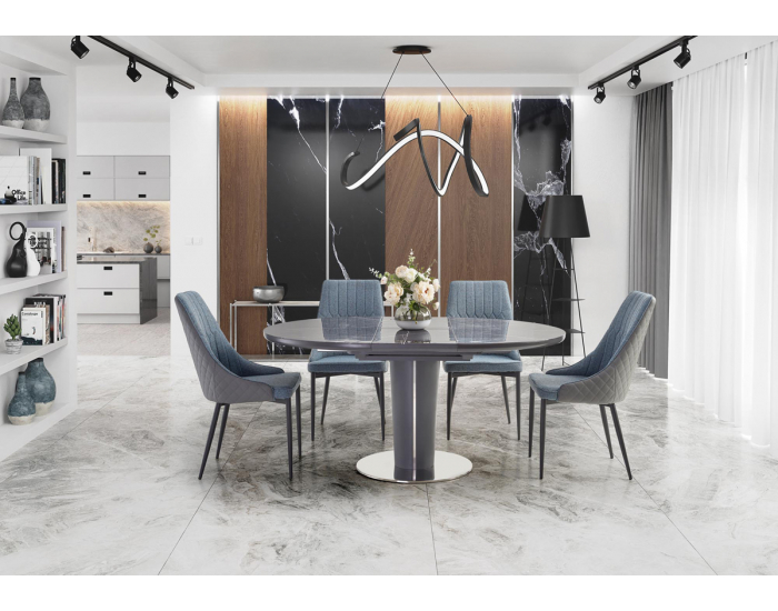 Okrúhly rozkladací jedálenský stôl Ricardo - sivý mramor / tmavosivá