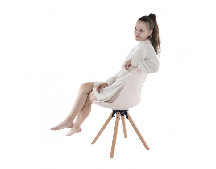 Otočná jedálenská stolička Etosa - perlová / buk je moderným a praktickým doplnkom do každej kuchyne alebo jedálne. Tento produkt značky Kondela je vyrobený z kvalitných materiálov, konkrétne plastu, ekokože a masívu. Hlavné farebné prevedenie je ružové s detailmi v odtieni perlovej a buku.