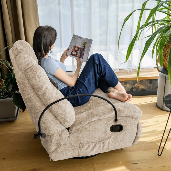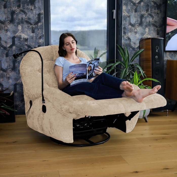 Luxusné relaxačné kreslo DELMOR je navrhnuté pre maximálne pohodlie a okamžite vás očarí svojou mäkkosťou, ergonomickým tvarovaním a premyslenými funkciami. Vďaka hojdacej a otočnej funkcii si doprajete príjemný oddych, zatiaľ ?o mechanické polohovanie umožňuje jednoducho nastaviť ideálnu polohu na čítanie, sledovanie filmov alebo nerušený relax. Praktický držiak na mobil umiestnený na boku kresla zabezpečí, že všetko potrebné budete mať vždy po ruke. Kreslo je čalúnené kvalitnou látkou v elegantnej béžovej farbe, ktorá pôsobí moderne a nadčasovo zároveň. Textília sa vyznačuje vysokou oderuodolnosťou až 75 000 cyklov podľa testu Martindale, čo zaručuje dlhú životnosť aj pri každodennom používaní. O výnimočný komfort sa stará výplň z peny 25W Virgin Foam, ktorá poskytuje pevnú oporu a zároveň príjemnú mäkkosť. Rozmery kresla sú (ŠxHxV): 100x99x106 cm, pričom výška sedu dosahuje 46 cm, hĺbka sedu 62 cm a šírka sedu 55 cm. Chrbtová opierka má výšku 71 cm a šírku 100 cm, vďaka čomu poskytuje dostatočnú oporu chrbta. Nosnosť kresla je 100 kg a jeho hmotnosť je 39 kg, čo podčiarkuje pevnú a stabilnú konštrukciu. Kreslo sa dodáva v demontovanom stave a vďaka spojeniu dizajnu, funkčnosti a vysokého komfortu sa stane obľúbeným miestom oddychu, z ktorého sa vám nebude chcieť vstať.