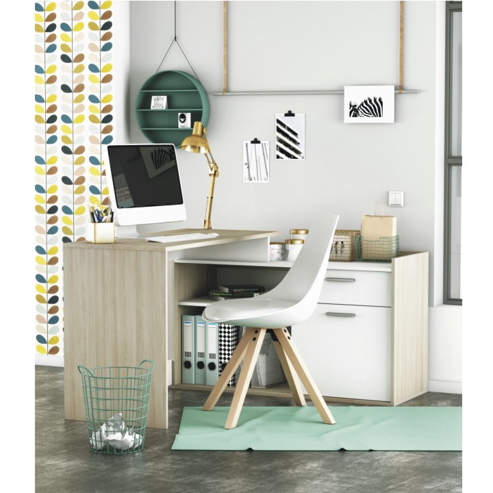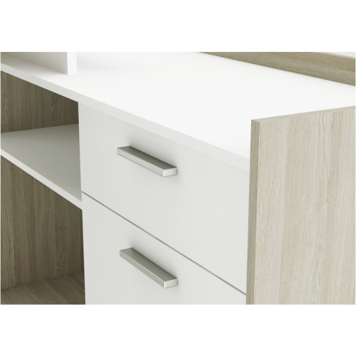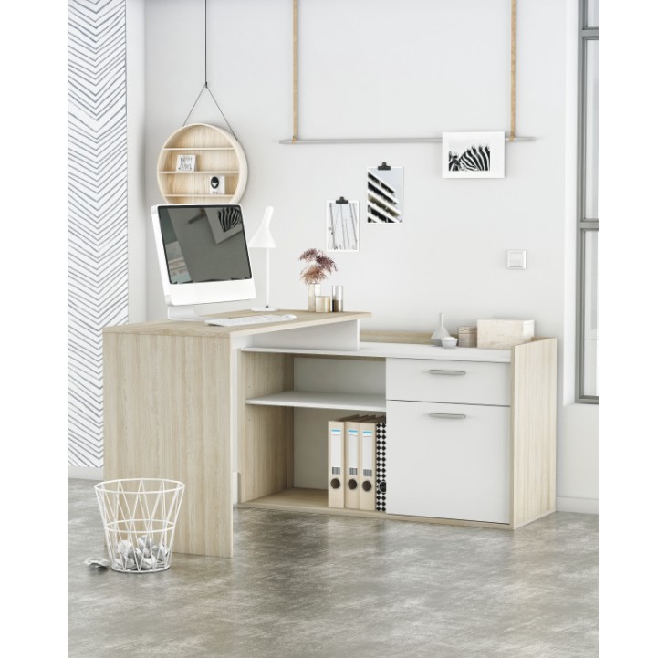 Rohový PC stolík Nevadis - biela / dub shanon