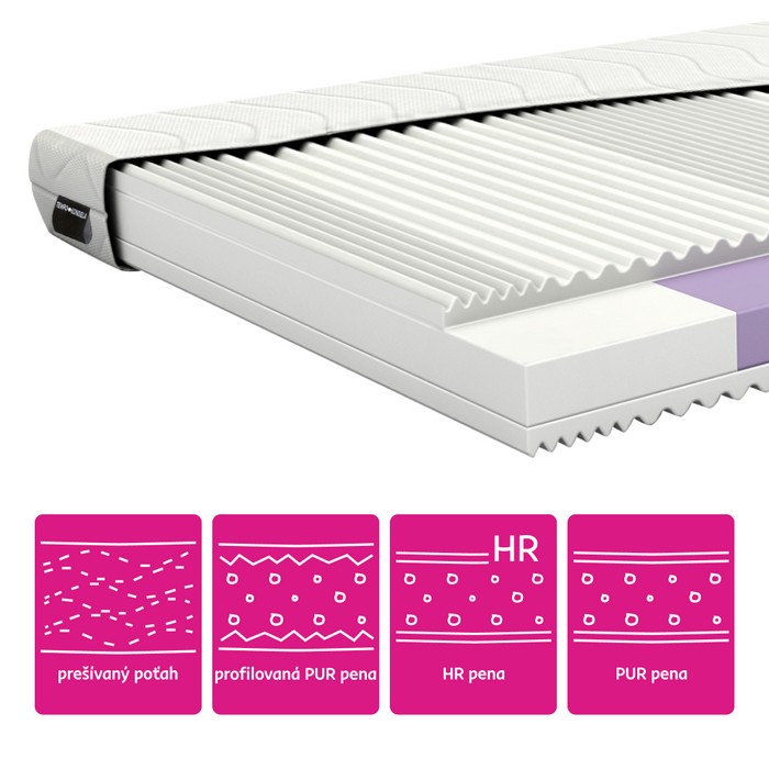 | MATERIÁL | PUR pena / HR pena / 100% polyester |