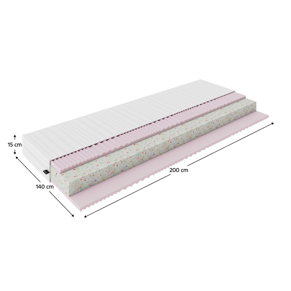 Matrac MAGDO 140x200 ponúka ideálne spojenie vysokého komfortu, praktických vlastností a kvalitného spánku. Je navrhnutý s dôrazom na optimálnu oporu celého tela vďaka 7-zónovej profilácii, ktorá sa prispôsobuje rôznym častiam tela a zvyšuje pohodlie počas odpočinku. Rozmery matraca sú 140x200 cm a jeho výška je 15 cm, čo zabezpečuje pohodlnú výšku lôžka pre každodenné používanie. Vrchná aj spodná vrstva matraca je vyrobená z 3,5 cm profilovanej elastickej PUR peny T2540 so zvýšenou hustotou. Táto pena poskytuje vyváženú kombináciu pružnosti a pevnosti, je odolná voči deformáciám a zároveň ponúka príjemný komfort. Jadro matraca tvorí 7,5 cm vrstva recyklovanej drvenej peny RG, ktorá zaručuje stabilitu a dlhú životnosť. Matrac má tvrdosť H4 - tvrdý, preto je ideálny pre ľudí, ktorí preferujú pevnejšiu oporu počas spánku. Nosnosť na osobu je do 110 kg, čo zaručuje dostatočnú podporu pre väčšinu používateľov. Poťah matraca je vyrobený zo 100 % polyesteru, je prešívaný a má viacero praktických vlastností - je antibakteriálny, antiroztočový a antialergický, vďaka čomu je vhodný aj pre alergikov. Poťah je snímateľný, vybavený zipsom z troch strán a možno ho prať pri teplote do 40 °C, čo uľahčuje údržbu a zvyšuje hygienu lôžka. Farebné prevedenie matraca je biela, takže ho jednoducho zladíte s akýmkoľvek interiérom. Ide o penový typ matraca, ktorý je najvhodnejší pri použití na lamelovom rošte s medzerami max. 6 cm, aby bola zabezpečená správna podpora aj ventilácia. Doprajte si kvalitný, zdravý a pohodlný spánok s matracom Magdo – ideálnou voľbou pre tých, ktorí hľadajú spoľahlivé riešenie pre každodenný odpočinok.