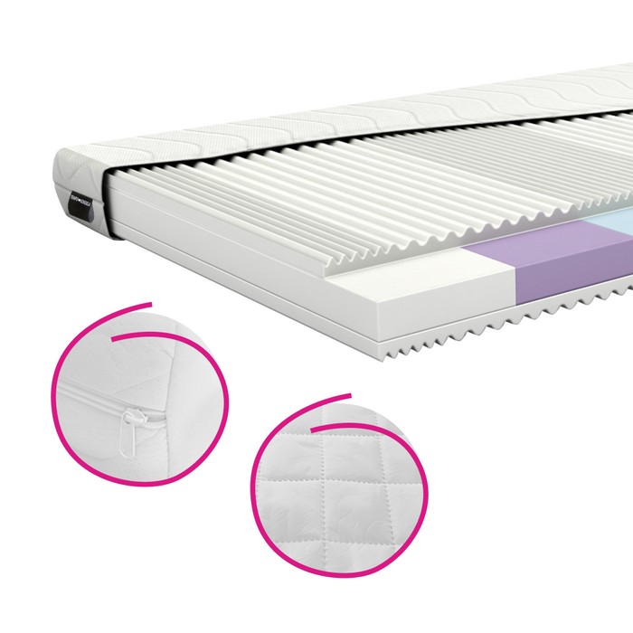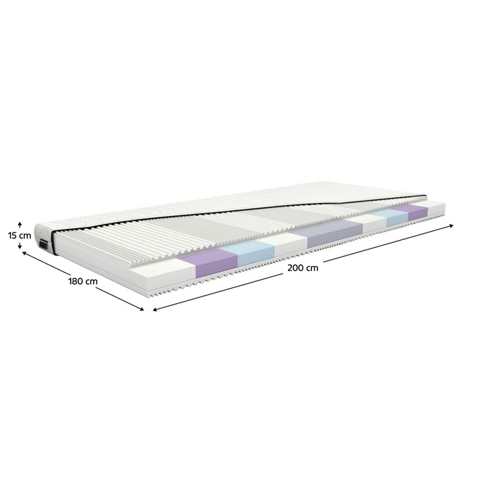 Penový matrac FOAMY je vyrobený z kombinácie kvalitnej PUR peny s hustotou T25 – T35 a vysokoelastickej HR peny s hustotou 35 kg/m3, pričom poťah tvorí 100 % polyester. Matrac má rozmery 180x200 cm, výšku 15 cm a je vyhotovený v bielej farbe. Je navrhnutý ako obojstranný model s rozdielnou tvrdosťou ložných plôch - stredne tvrdou T3 a tvrdšou T4, čo umožňuje jeho pravidelné otáčanie a rovnomerné opotrebovanie. Konštrukcia matraca je sendvičová a jadro je rozdelené do 9 anatomických zón, ktoré zabezpečujú optimálne opretie jednotlivých častí tela a podporujú správnu polohu chrbtice počas spánku. Maximálna nosnosť matraca je 100 kg na osobu. Pre správne fungovanie a dostatočné odvetranie odporúčame matrac používať na lamelovom rošte s pružnými predpätými lamelami, pričom medzera medzi lamelami by nemala presiahnuť 6 cm. Pre zachovanie vlastností a predĺženie životnosti sa odporúča matrac otáčať každé 3 až 4 mesiace. Matrac je vybavený prešívaným poťahom zo 100 % polyesteru s gramážou 130 g/m2, ktorý má certifikát OEKO-TEX. Poťah je snímateľný, vybavený zipsom a je možné ho prať pri teplote 40 °C. Disponuje antibakteriálnou, antiroztočovou a antialergickou úpravou, čím prispieva k hygienickému a zdravému prostrediu na spanie.