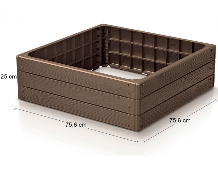 Záhon sa dodáva v demonte, no jeho montáž je jednoduchá a nezaberie veľa času. Po zostavení má rozmery 75.6 cm na šírku a hĺbku a 25 cm na výšku, čo poskytuje dostatok priestoru pre vaše obľúbené kvety alebo bylinky. Jeho hranatý tvar a rovné línie mu dodávajú moderný vzhľad, ktorý sa hodí do každej záhrady.