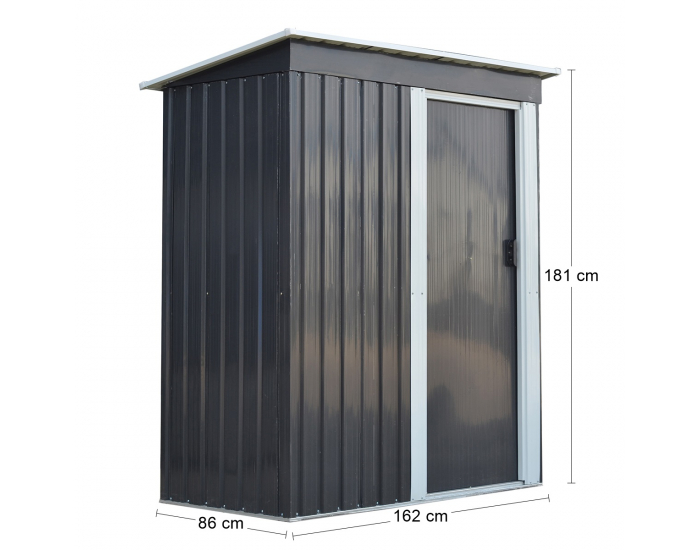 Konštrukcia a steny plechového záhradného domčeka Toolster 86x162x181 cm sú vyrobené z kvalitnej, pozinkovanej ocele v hrúbke 0,26 – 0,6 mm vo farbe antracit, ktorá je odolná voči korózii a zabezpečuje pevnosť a odolnosť celého domčeka. Výhodou domčeka sú praktické, posuvné dvere, ktoré šetria miesto. Tento domček sa stane neodmysliteľnou súčasťou Vašej záhrady a užitočným pomocníkom na uskladnenie záhradného náradia a vybavenia, napríklad krovinorezu či lopát. S rozlohou 1,4 m2 je vhodný do menších záhrad, kde sa pohodlne zmestí. Rozmery domčeka sú (DxŠxV): 86x162x181 cm. Domček nedisponuje kovovou základňou.