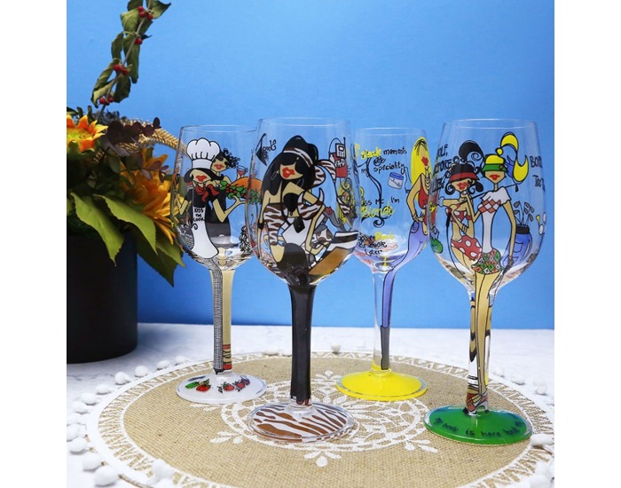 Pohár na víno (4 ks) Hily 490 ml - priehľadná / vzor