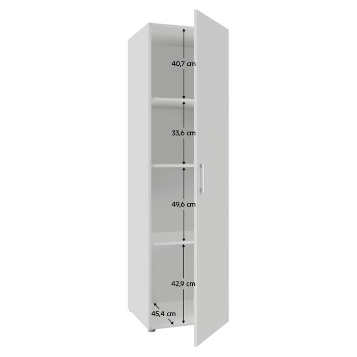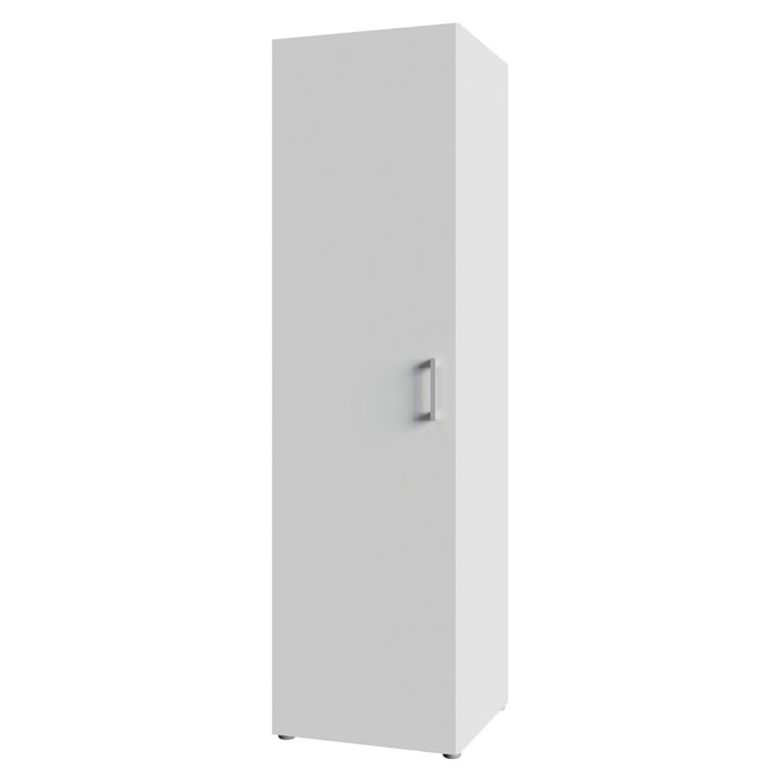Jednoduchosť tvarov a premyslený úložný priestor robia zo skrine ROMER NEW 1D praktický a univerzálny nábytok vhodný do rôznych interiérov. Je vyrobená z kvalitnej laminovanej DTD s hrúbkou 1,6 cm v obľúbenom bielom prevedení, ktoré pôsobí prirodzene a ľahko sa kombinuje s ostatným zariadením. Celkové rozmery skrine sú (ŠxHxV): 48,6x50x176,5 cm, takže ponúka dostatok úložného priestoru pri zachovaní kompaktných rozmerov. Skriňa je jednodverová a vo vnútri sa nachádzajú tri police s nosnosťou 5 kg na každú z nich, pričom vrchná doska unesie až 10 kg. Poskytuje tak ideálne miesto na uloženie oblečenia, dokumentov či rôznych bytových doplnkov. Dvierka sú univerzálne, čo znamená, že ich môžete namontovať na pravú alebo ľavú stranu podľa dispozície miestnosti. Model je vybavený plastovou úchytkou v striebornej farbe, ktorá dotvára jeho decentný vzhľad. Skriňa sa hodí do spálne, chodby, kancelárie aj detskej izby, kde zabezpečí funkčný úložný priestor bez narušenia celkového štýlu interiéru. Pre zvýšenie stability odporúčame skriňu pripevniť k stene. Dodávaná je v demonte.