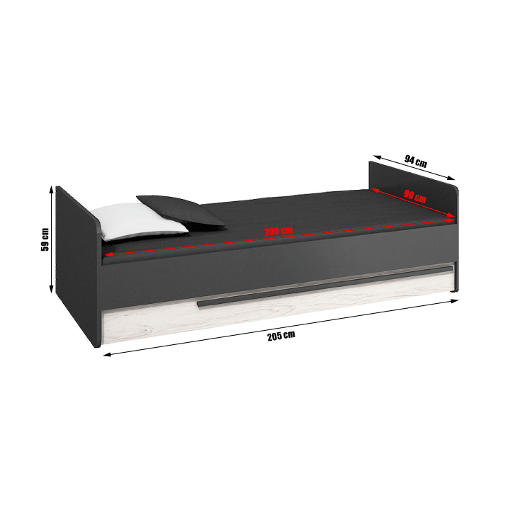 Váš šikovný študent bude určite potrebovať aj pohodlnú jednolôžkový posteľový rám s úložným priestorom BEVERLY 90. Úložný priestor určite využije na uskladnenie spoločenských hier, sezónneho oblečenia, hračiek či kníh. Rozmery sú (ŠxHxV): 205x94x59 cm, plocha na spanie má rozmery 90x200 cm. Je dodávaný bez matraca a roštu. Zariaďte izbu, ktorú budú Vaše deti milovať. Premeňte detské kráľovstvo na izbu dospievajúceho tínedžera so sektorovým nábytkom Beverly. Vybuduje miesto, kde sa bude každý študent cítiť výnimočne a sebaisto, miesto, ktoré bude rozvíjať jeho schopnosti a naštartuje jeho úspešnú budúcnosť. Nábytok je vyrobený z laminovanej DTD (drevotriesky) s odolnými ABS hranami. Ozdobné lišty, ktoré slúžia ako úchytky, sú z MDF (drevovláknitá doska). Farebná kombinácia sosna andersen a sivý grafit dodá miestnosti štýl a trendy vzhľad.