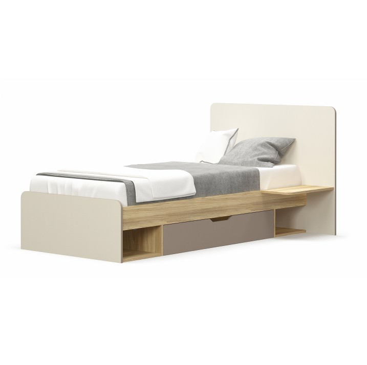 Posteľový rám s úložným priestorom Lotty 1S/90 - dub jačmenný / champagne / cappuccino