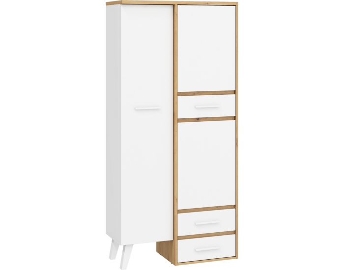 Štýlovú pracovňu, v nadčasovom farebnom prevedení dub artisan / biela, si môžete zakúpiť ako zostavu, ktorú tvoria tieto prvky (ŠxHxV): pc stolík (125x57x59 cm), polica (120x27x50 cm), skriňa (90x42x191 cm), regál (62x40x152 cm), konferenčný stolík (80x80x40 cm) a komoda (120x42x79 cm). Systém NORDIS je moderná, nadčasová kolekcia, ktorú je vhodné umiestniť do obývačiek, študentských izieb, jedální, spální, kancelárií alebo predsiení. Drevené nožičky vysoké 18 cm vytvárajú na jednotlivých prvkoch jemný dojem retro štýlu. Všetky prvky kolekcie NORDIS možno spolu kombinovať, rovnako aj zvoliť si pre Vás vhodnú kombináciu farieb. Kvalita, detailné prepracovanie a celistvosť - to všetko a ešte oveľa viac, pre Vás ponúka NORDIS. V prípade záujmu je možné dokúpiť aj LED osvetlenie v rôznych farbách.
