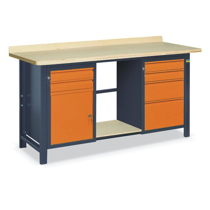 Pracovný stôl s jednou policou SS02L/C/PL45/E - grafit / oranžová