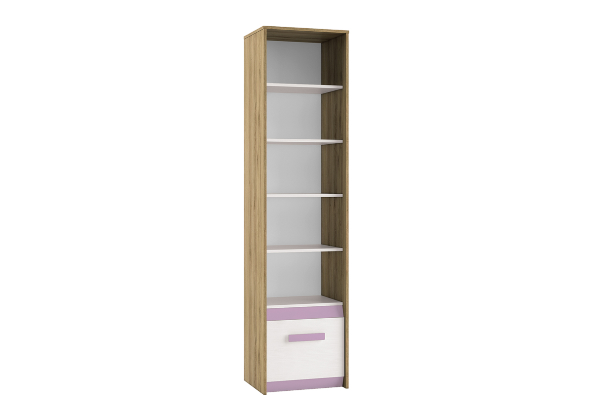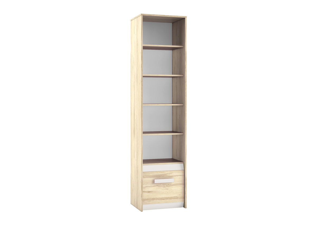 Úzky regál BEST 05 je vyrobený vo farebnom prevedení breza / biela linea, pričom na výber je aj vo viacerých farebných vyhotoveniach. Obsahuje otvorené police a zásuvku v spodnej časti. Regál možno kombinovať s ostatnými prvkami z modelovej rady Best. Systém Best ponúka moderný nábytok najmä pre deti vo veku 5-16 rokov, ale aj pre študentov. Lišta s úchytmi sú dostupné vo viacerých farbách, korpus si možno vybrať v prevedení dub divoký alebo breza, fronty sú buď z brezy alebo v bielej farbe. Nábytok je vyrobený z kvalitných lamino dosiek odolných proti poškriabaniu, vlhkosti a vysokej teplote. Všetky hrany sú ohraničené ABS úpravou, ktorá je odolná proti nárazu, vlhkosti, nedeformuje sa a neodlepí.
