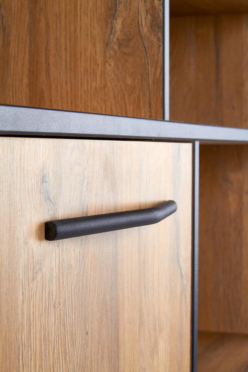 Elegantný regál LOCKHEED KM2 vnesie do Vášho domova kus industriálneho štýlu. Je vhodné ho umiestniť do obývačiek, spální alebo kancelárií. Materiál použitý na jeho výrobu je dyhovaná nábytková doska v krásnom prevedení dub grandson. Stojí na pevných nohách vyrobených z práškovo lakovanej ocele, ktorá je pevná a odolná voči poškriabaniu. Rozmery regálu sú (ŠxHxV): 110x40x130 cm. Disponuje jednodverovou skrinkou predelenou policou a množstvom otvoreného úložného priestoru v podobe políc. Pre jednoduchšie otváranie majú dvierka úchytku. Regál KM2 je súčasťou moderného systému Lockheed a jeho jednotlivé prvky je možné spolu kombinovať a vybudovať tak harmonický a dizajnový domov. Dodávaný je v demonte.