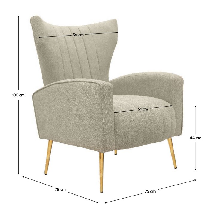 Doprajte si spojenie pohodlia, elegancie a moderného dizajnu s relaxačným kreslom BARET, ktoré okamžite pozdvihne atmosféru vášho domova. Je čalúnené béžovou látkou s vysokou oderuodolnosťou 75 000 cyklov Martindale, vďaka čomu pôsobí nadčasovo a zároveň je pripravené na každodenné používanie. Stabilitu kresla zabezpečuje kvalitná konštrukcia z borovicového dreva, preglejky a kovu, takže si môžete byť istí jeho dlhou životnosťou. O mimoriadne pohodlné sedenie sa stará výplň z peny Standard Foam (24 kg/m3), ktorá poskytuje mäkkosť a príjemnú oporu počas dlhšieho relaxu. Luxusný nádych kresla podčiarkujú zlaté kovové nožičky, ktoré mu dodávajú moderný vzhľad aj vizuálnu ľahkosť. Kreslo ponúka komfortné rozmery - 76 cm na šírku, 78 cm do hĺbky a 100 cm do výšky. Sedacia časť vo výške 44 cm, s hĺbkou 53 cm a šírkou 51 cm umožňuje pohodlné a prirodzené sedenie. Chrbtová opierka široká 71 cm a vysoká 56 cm vám poskytne potrebnú oporu počas oddychu. Nosnosť 120 kg potvrdzuje jeho pevnosť a odolnosť v každodennom používaní. Vďaka dekoratívnemu prešívaniu, relaxačnému charakteru a celočalúnenému prevedeniu sa kreslo dokonale hodí do obývačky, spálne aj pracovne. Praktickou výhodou je aj to, že sa dodáva v demonte, čo uľahčuje jeho prenášanie a montáž.