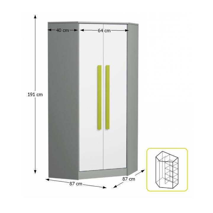 Rohová šatníková skriňa Piere P02 - sivá / biela / zelená