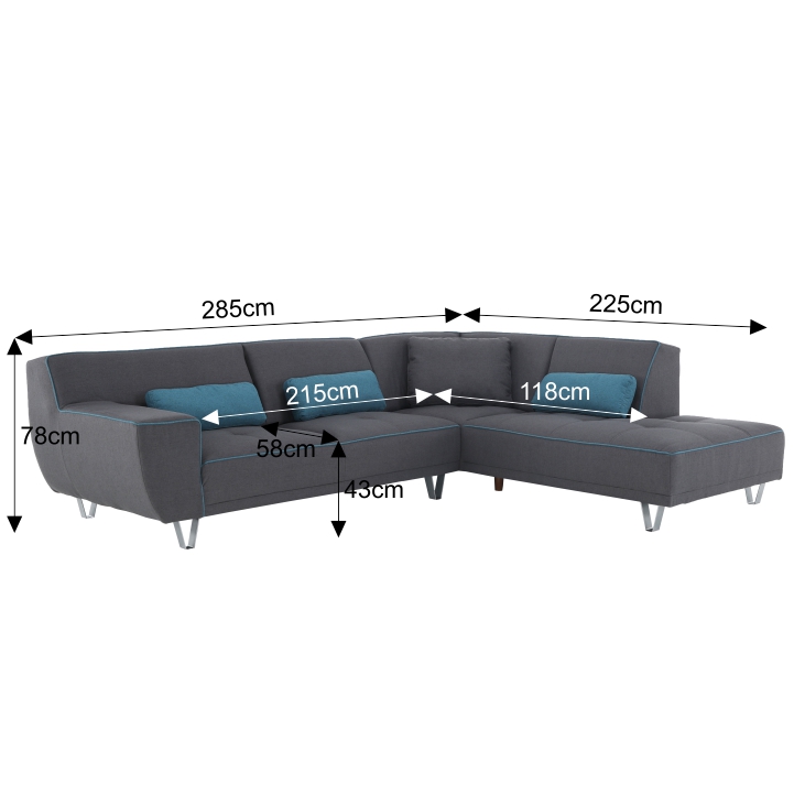 Rohová sedačka s rozkladom Derba P - tmavosivá / petrolejová