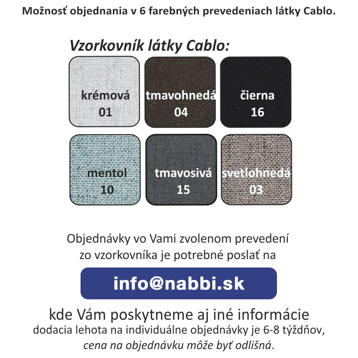 | DOPLŇUJÚCE INFORMÁCIE | molitánovo-pružinové sedenie |