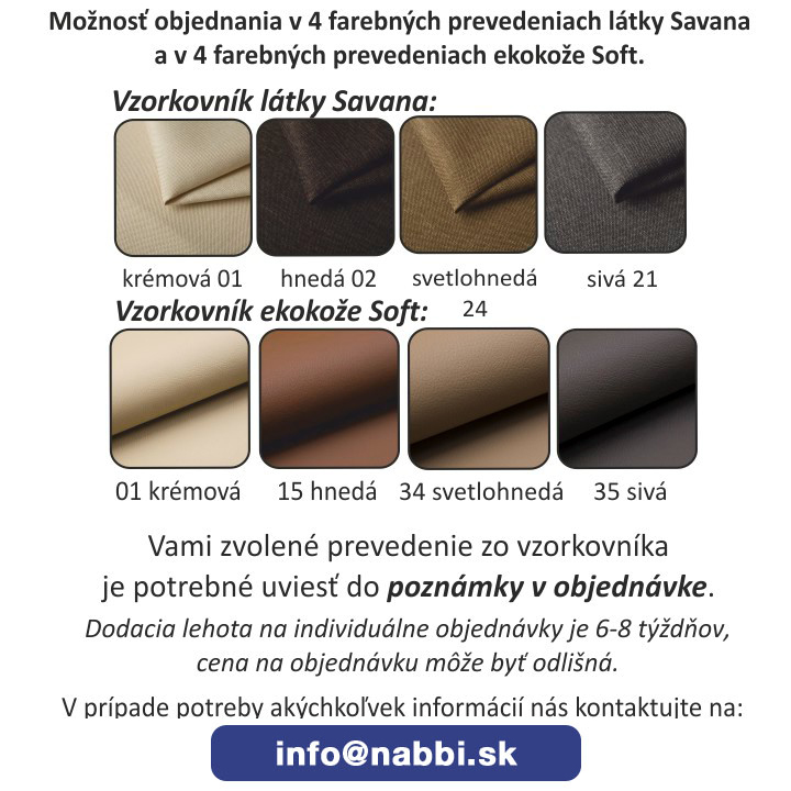 | DOPLŇUJÚCE INFORMÁCIE | nastavenie opierok hlavy a rúk, pružinové sedenie |