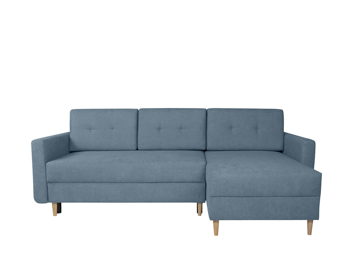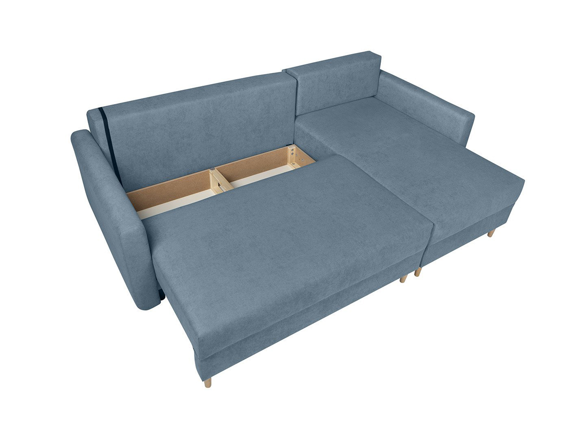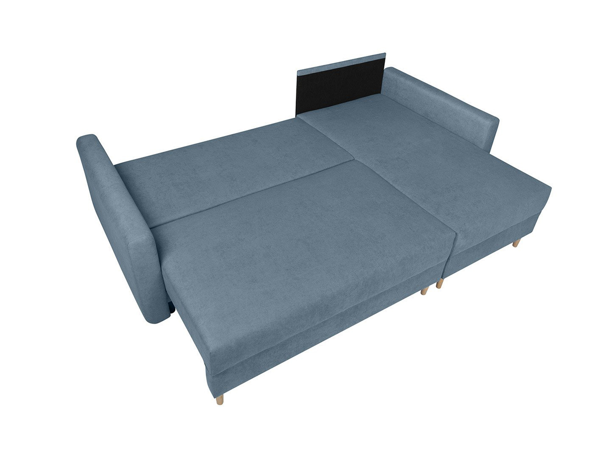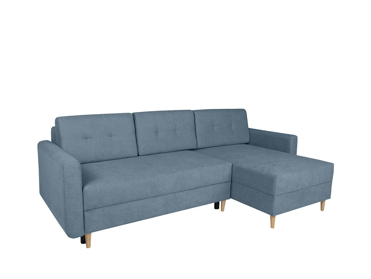 Rohová sedačka s rozkladom Feliz Lux L/P - tyrkysová / drevo (TX002)