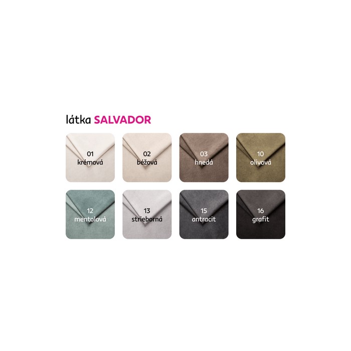 Možnosť objednania v 8 farebných odtieňoch látky Salvador v cene 1.299 Eur s dodacou lehotou 6-8 týždňov. Pri individuálnej objednávke je potrebné zaplatiť 20% zálohu z danej sumy. Po uhradení zálohy bude Vaša požiadavka zadaná do výroby.