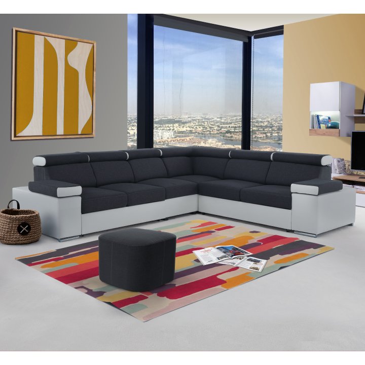 Rohová sedacia súprava MARBELA LUX 2+3 P pôsobí luxusne a poskytne svojim užívateľom komfort a pohodlie. Rozmery sedačky sú (ŠxHxV): 334x264x80/100 cm. Je čalúnená sivou látkou Savanana na sedacej časti a operadlách. V kontraste k nej je ekokoža v bielej farbe. Sedačka má 5 polohovacích opierok hlavy. Viete si ich nastaviť a zaistiť až v šiestich stupňoch. Polohovacie sú aj opierky na ruky, tie poskytujú až tri stupne polohovania. Sedačka stojí na štýlových nožičkách. Je rozkladacia, jednoducho tak získate lôžko s rozmerom 125x185 cm. Určite oceníte aj vysúvací úložný priestor na odloženie sezónneho oblečenia, prikrývok alebo kníh.