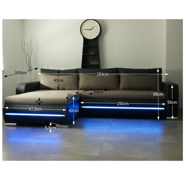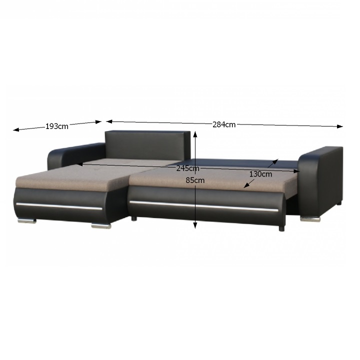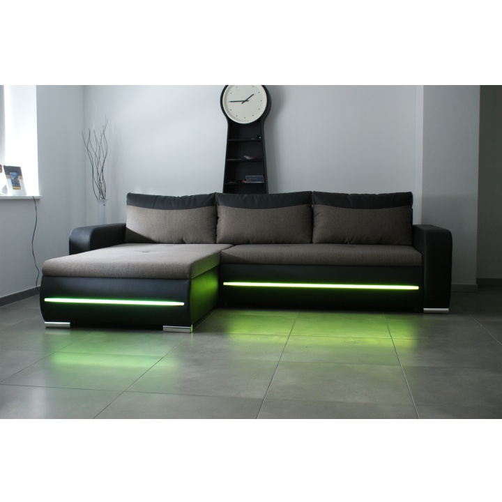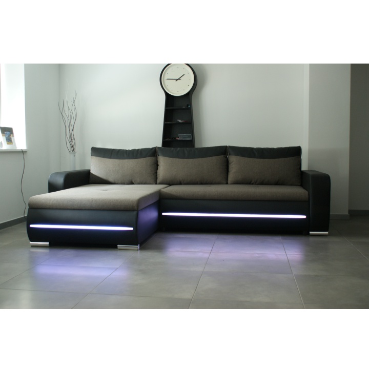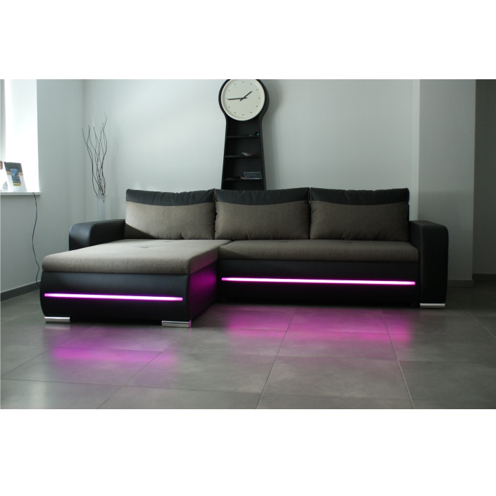 Rohová sedačka s rozkladom a osvetlením Kody L - čierna / hnedá
