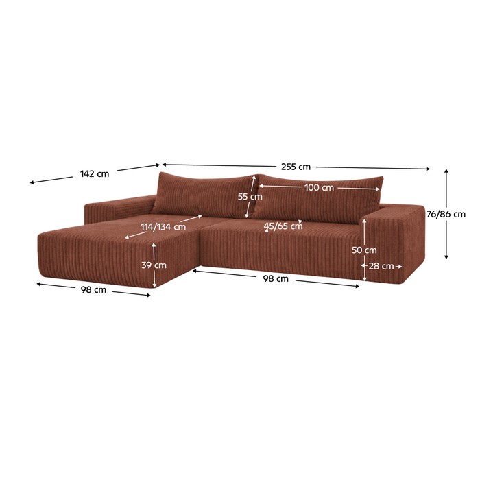 Rohová sedacia súprava PREMA ROH UNI je ideálnou voľbou pre moderné domácnosti, kde sa kombinuje pohodlie s nadčasovým dizajnom. Jej univerzálne rohové prevedenie a elegantná hnedá látka Tilia 52 umožňujú ľahké začlenenie do akéhokoľvek interiéru. Celková veľkosť sedačky je (ŠxHxV): 255x142x76/86 cm, sedacia časť má šírku 98 cm, hĺbku 45/65 cm a výšku sedu 39 cm. Kvalitná výplň z PUR peny T28 a odolná látka s odolnosťou 100 000 oderov podľa testu Martindale zabezpečujú komfort aj dlhodobú životnosť. Sedačka je rozkladacia a ponúka plochu na spanie 120x200 cm, pričom integrovaný úložný priestor poskytuje miesto na posteľnú bielizeň alebo sezónne veci. Dva veľké vankúše (100x55 cm) zvyšujú pohodlie pri sedení a relaxe. Stojí na čiernych plastových nožičkách s výškou spodného priestoru 2 cm, rozmery otomanu sú 98x114/134 cm a opierky na ruky merajú 28x50 cm. Dodáva sa v demonte a svojou kombináciou praktickosti a moderného štýlu je vhodná pre každú domácnosť.